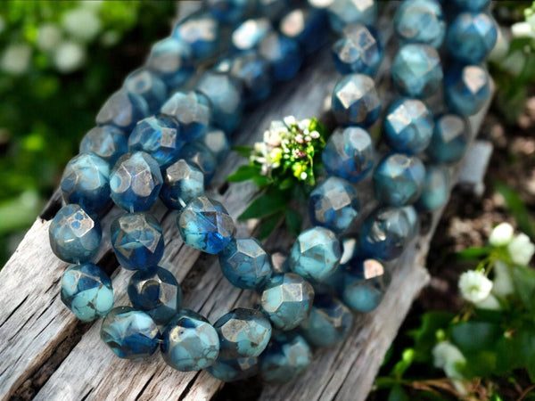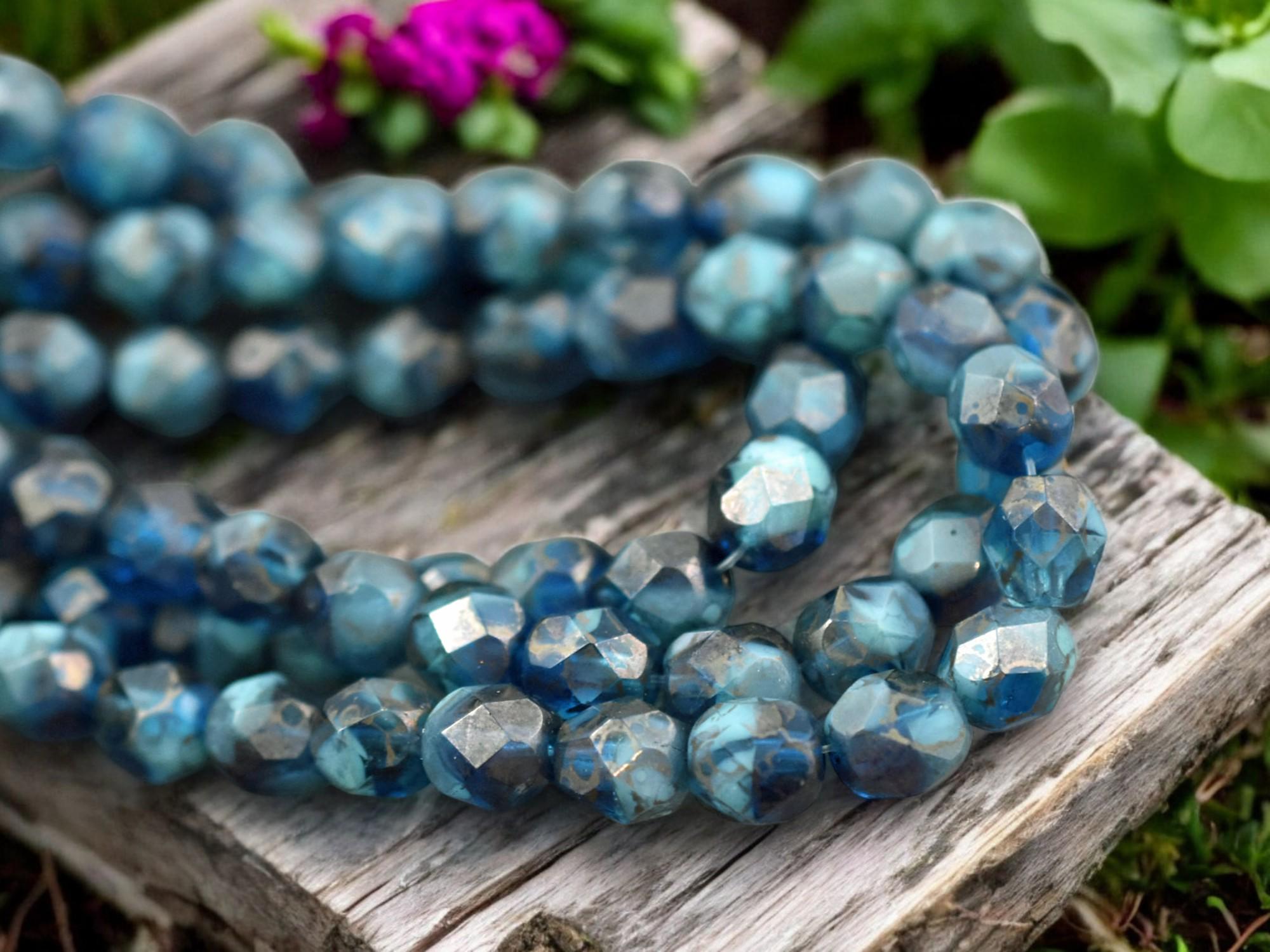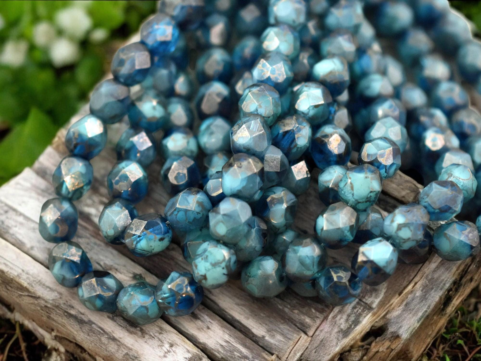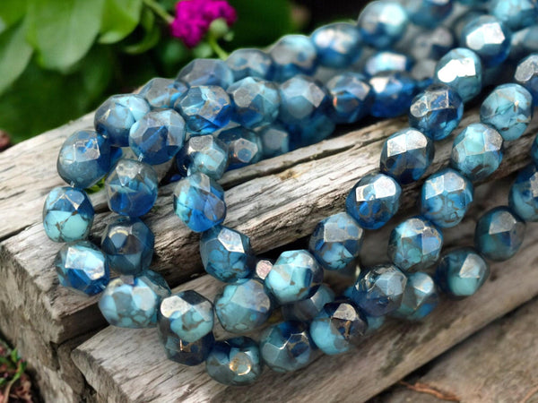 *25* 6mm Teal Marble Luster Fire Polished Round Beads