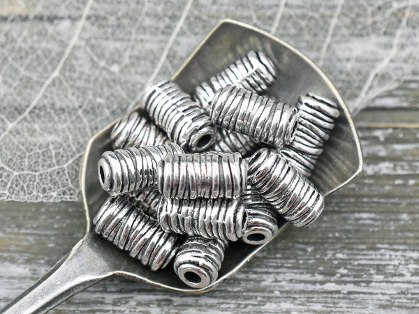 *25* 6x11mm Antique Silver Column Beads