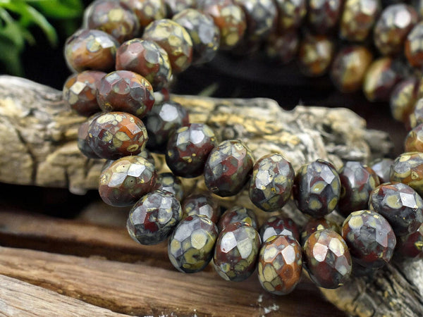 *25* 6x8mm Blended Red & Orange Opaline Picasso Fire Polished Rondelle Beads