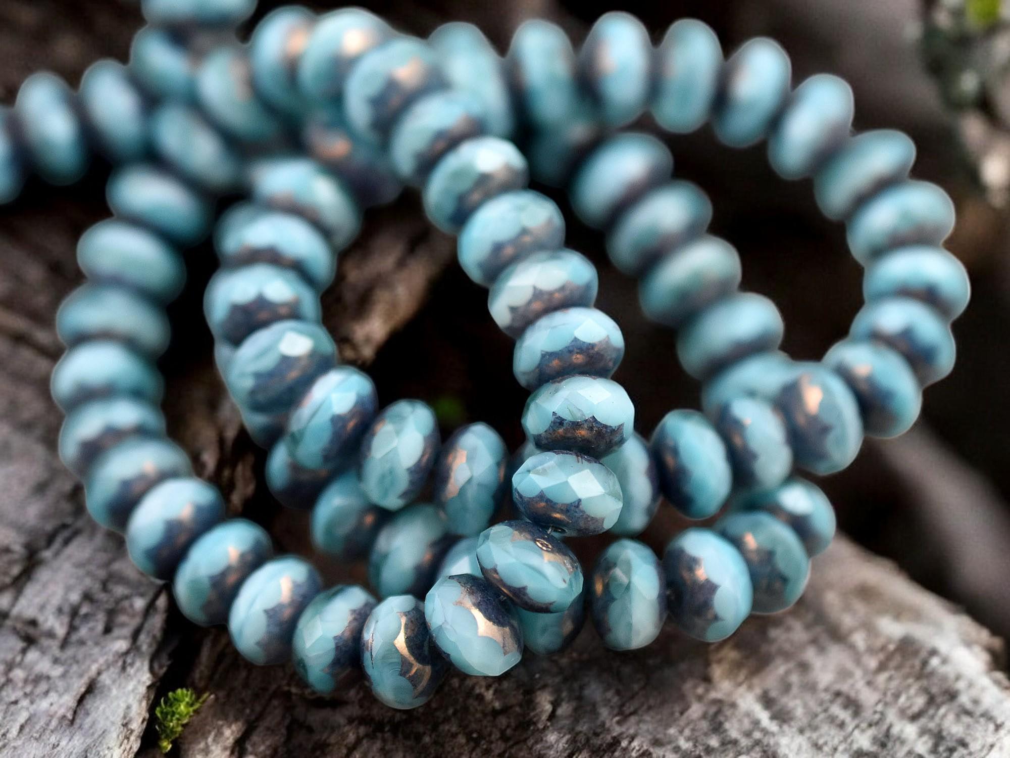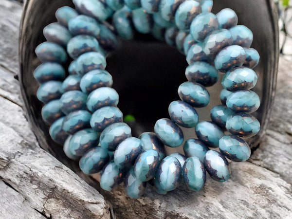 *25* 6x8mm Bronze Washed Blended Larimer Blue Opaline Fire Polished Rondelle Beads