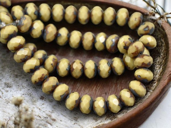 *25* 6x8mm Opaque Camel Beige Picasso Fire Polished Rondelle Beads