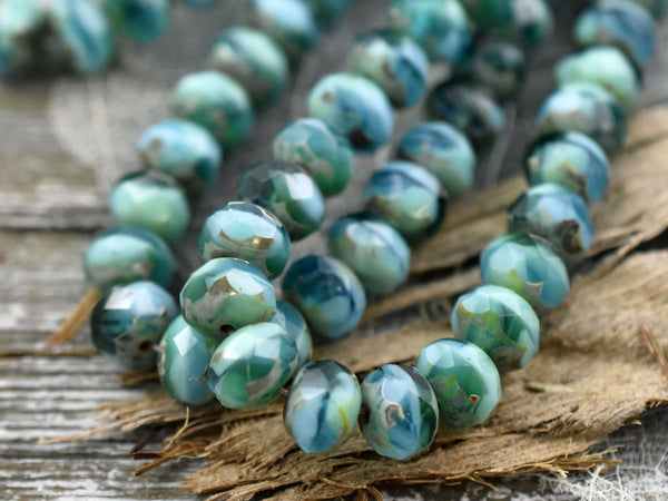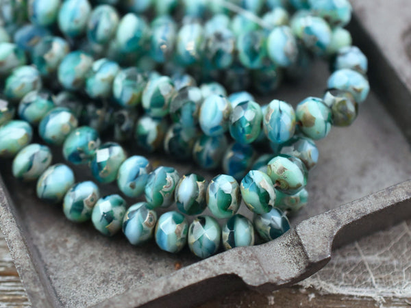 *25* 6x8mm Riviera Maya Picasso Fire Polished Rondelle Beads