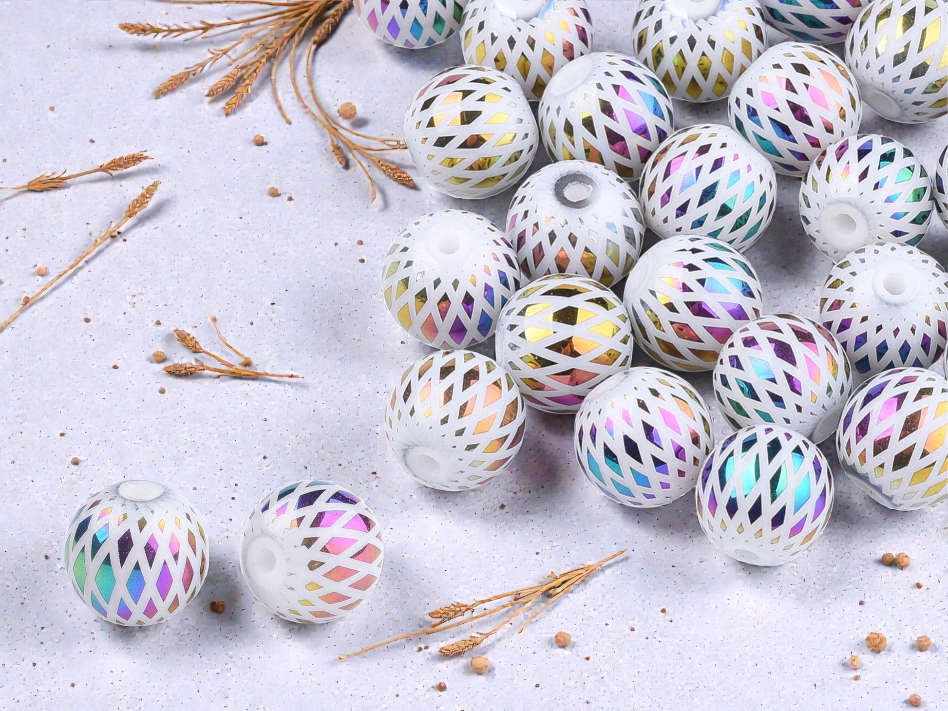 *25* 8mm Rainbow Metallic Electroplated White Round Beads