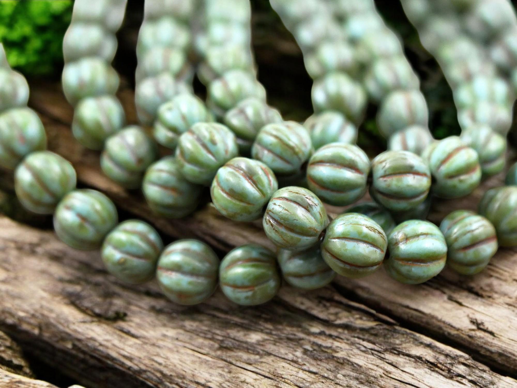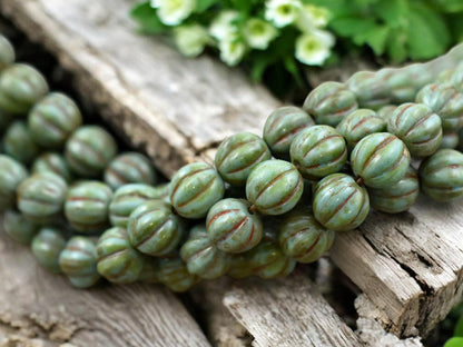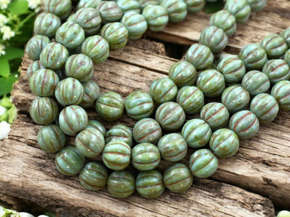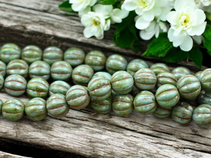 *25* 8mm Turquoise Picasso Round Melon Beads