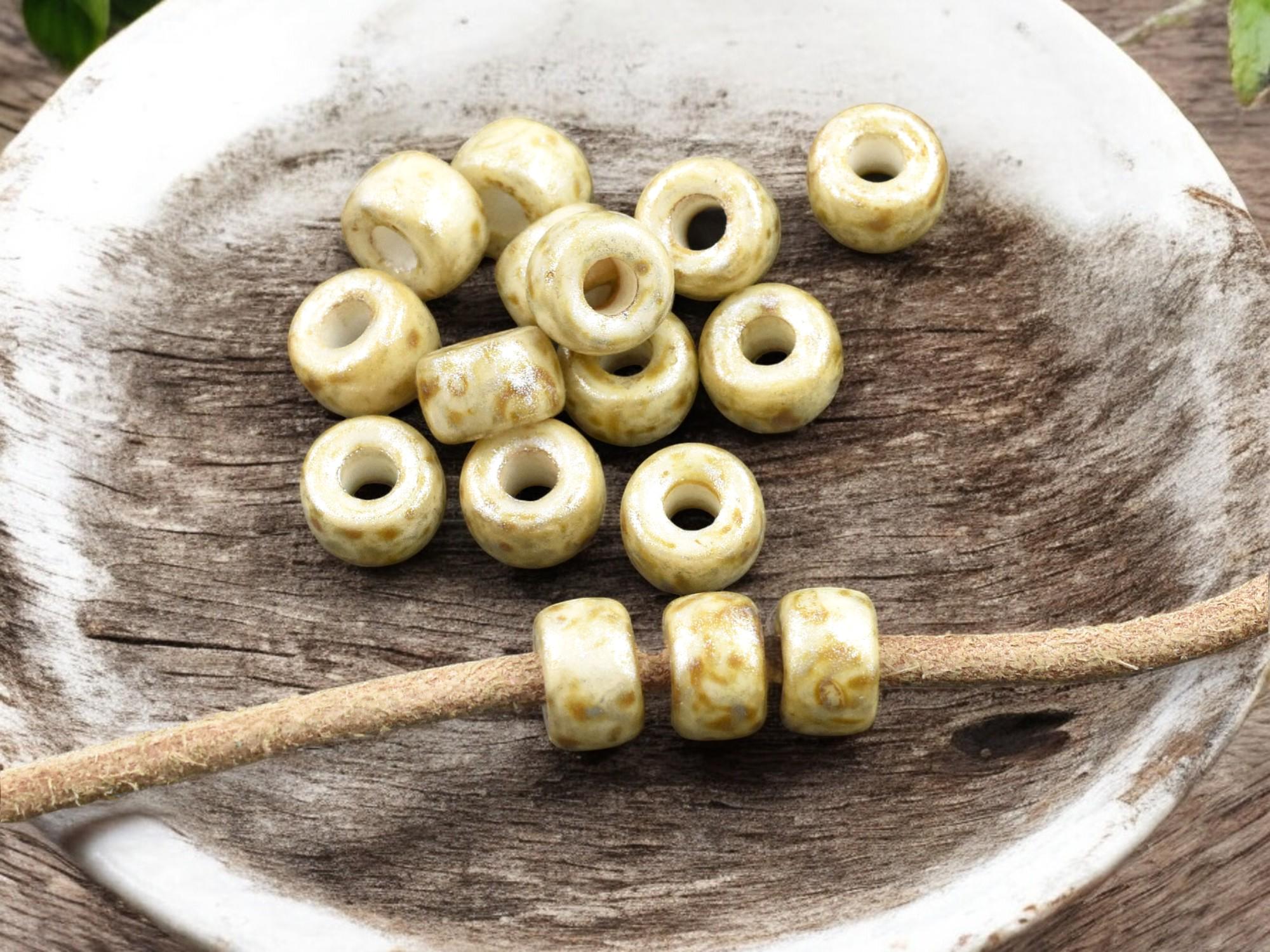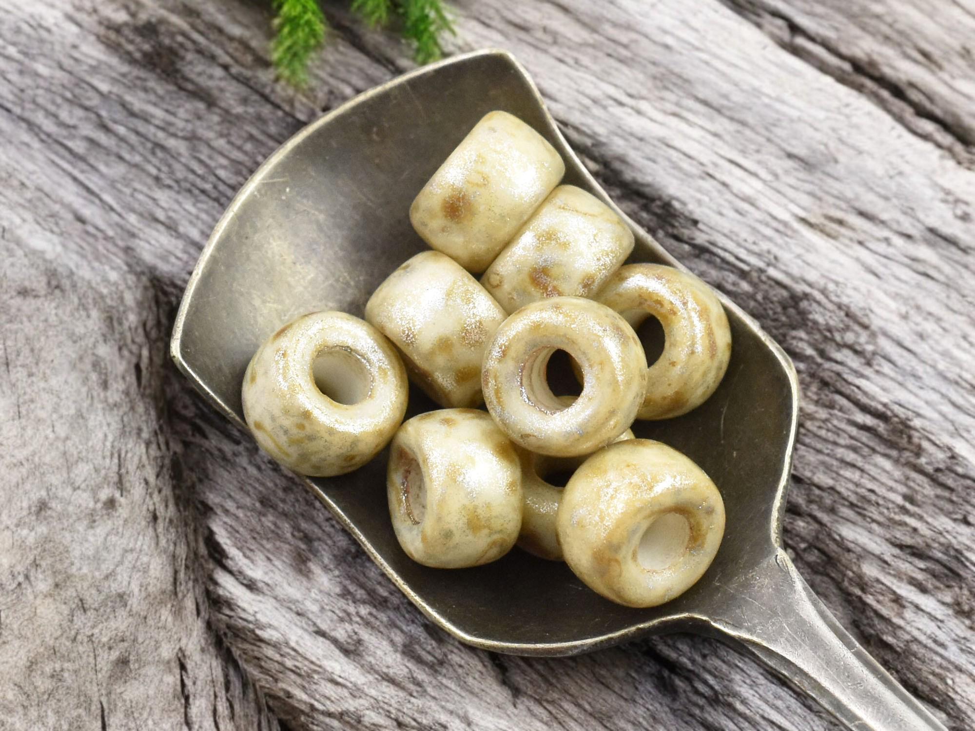 *25* 9mm Alabaster Beige Picasso Large Hole Crow Beads