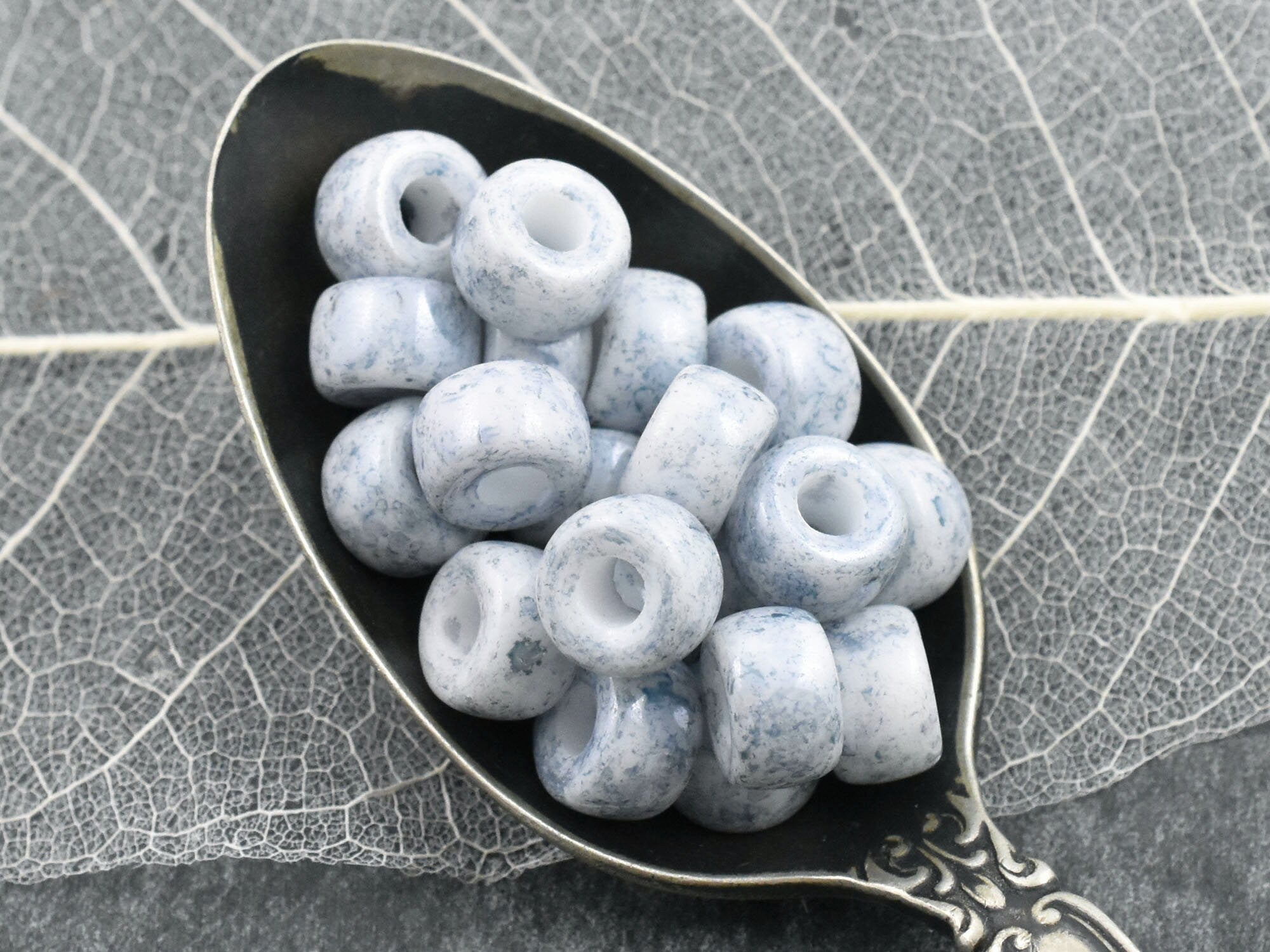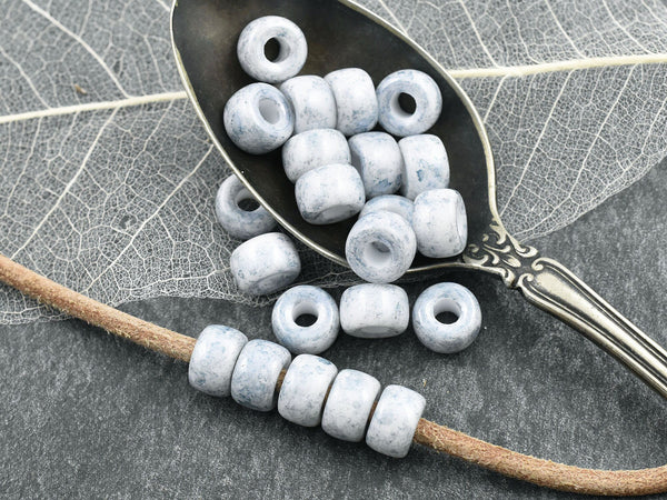 *25* 9mm Alabaster Blue Picasso Large Hole Crow Beads