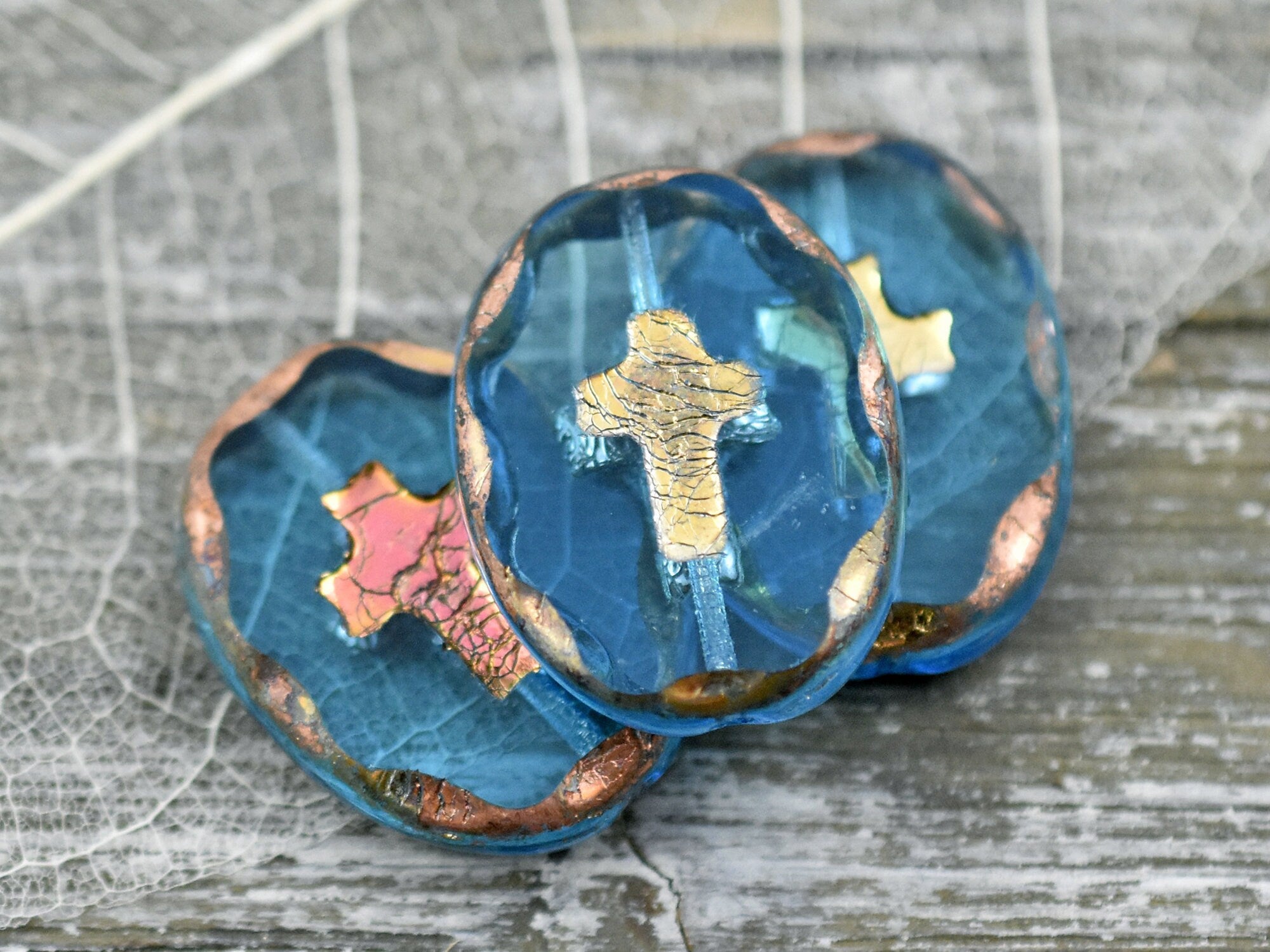 25x19mm Copper Gold Washed Aquamarine Table Cut Oval Cross Beads
