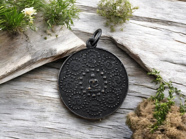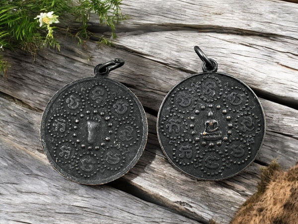 29mm Black Finished Buddha Footprint Amulet Pendant