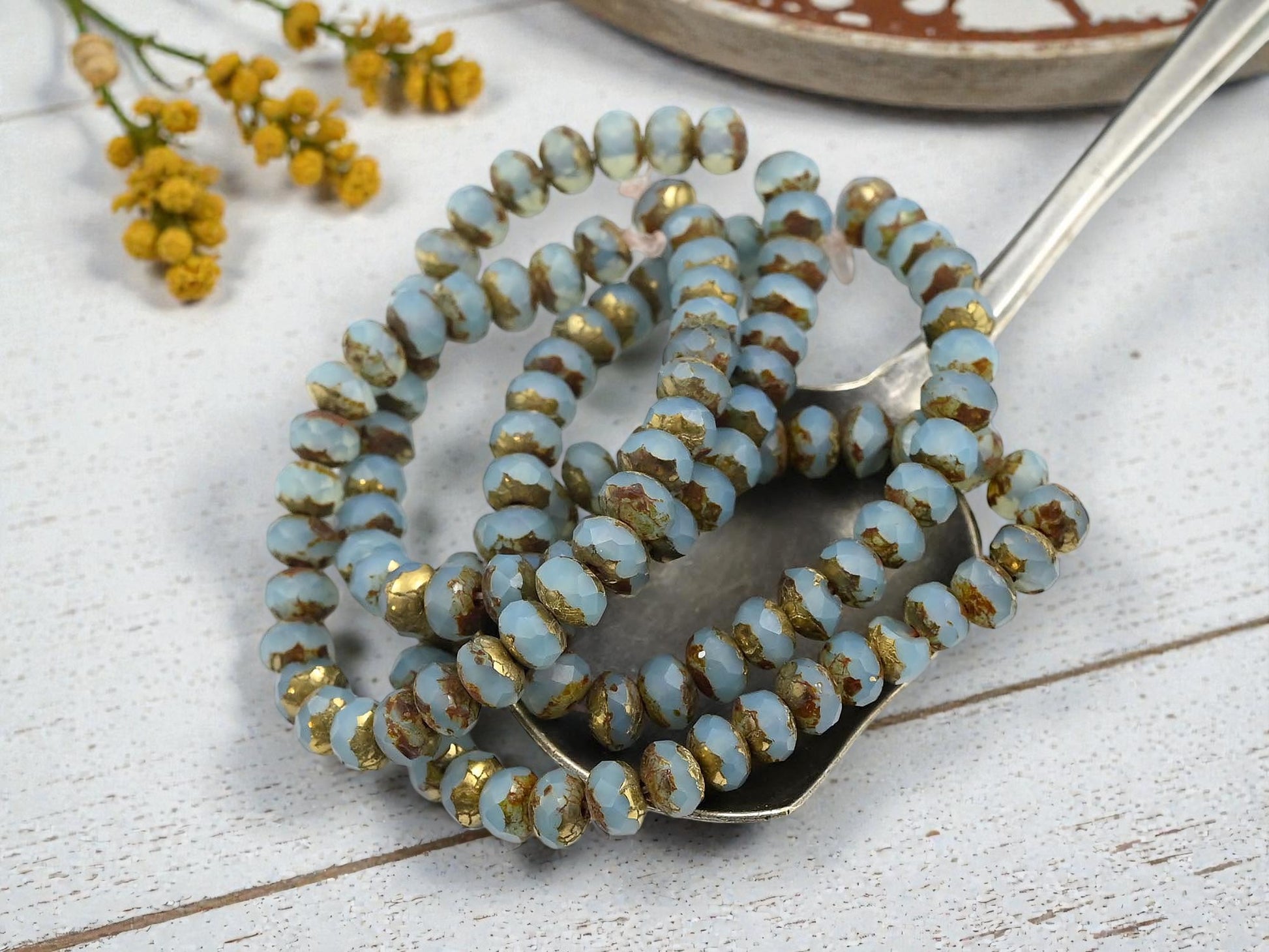 *30* 3x5mm Blue Opal Picasso Fire Polished Rondelle Beads