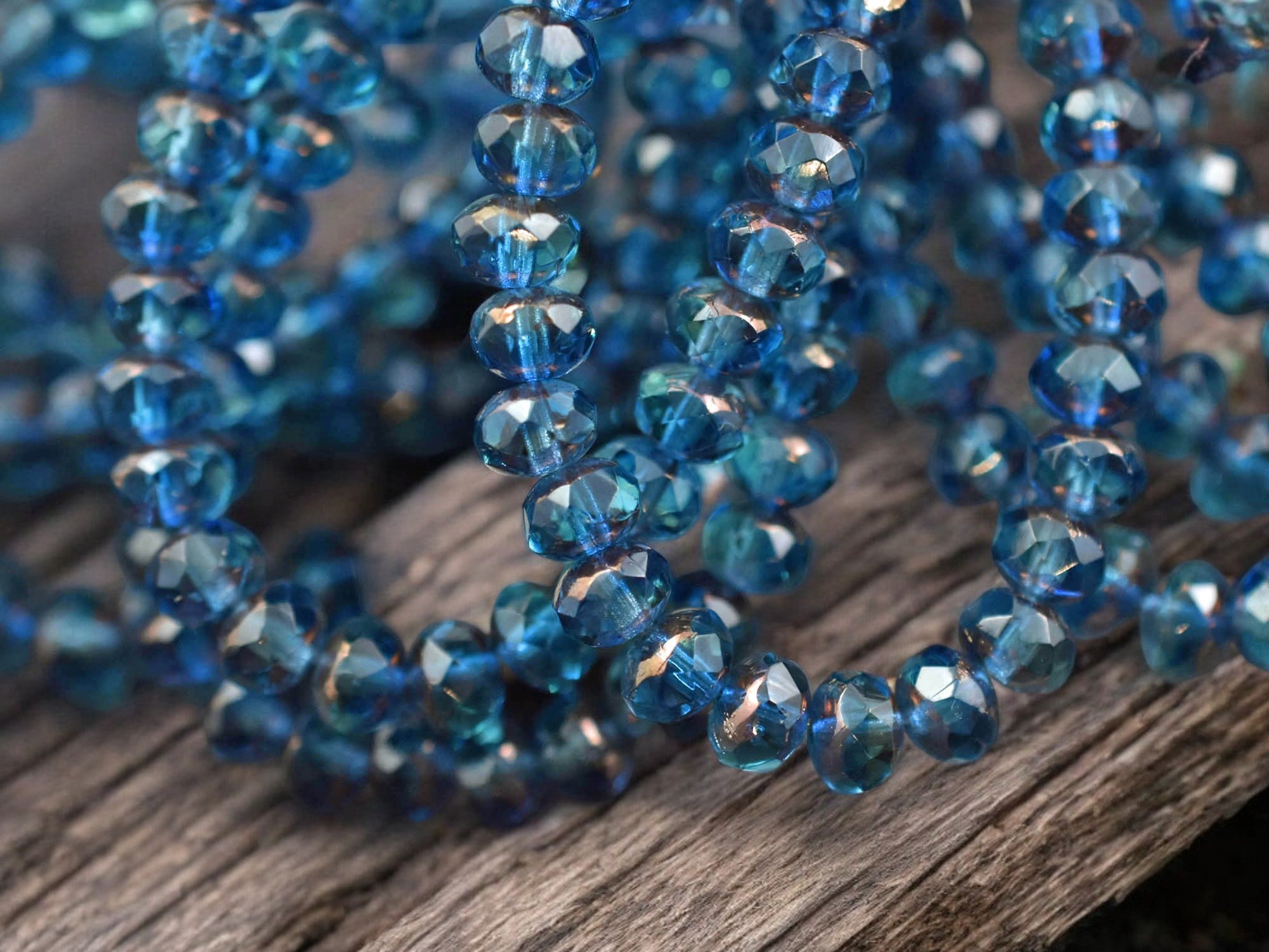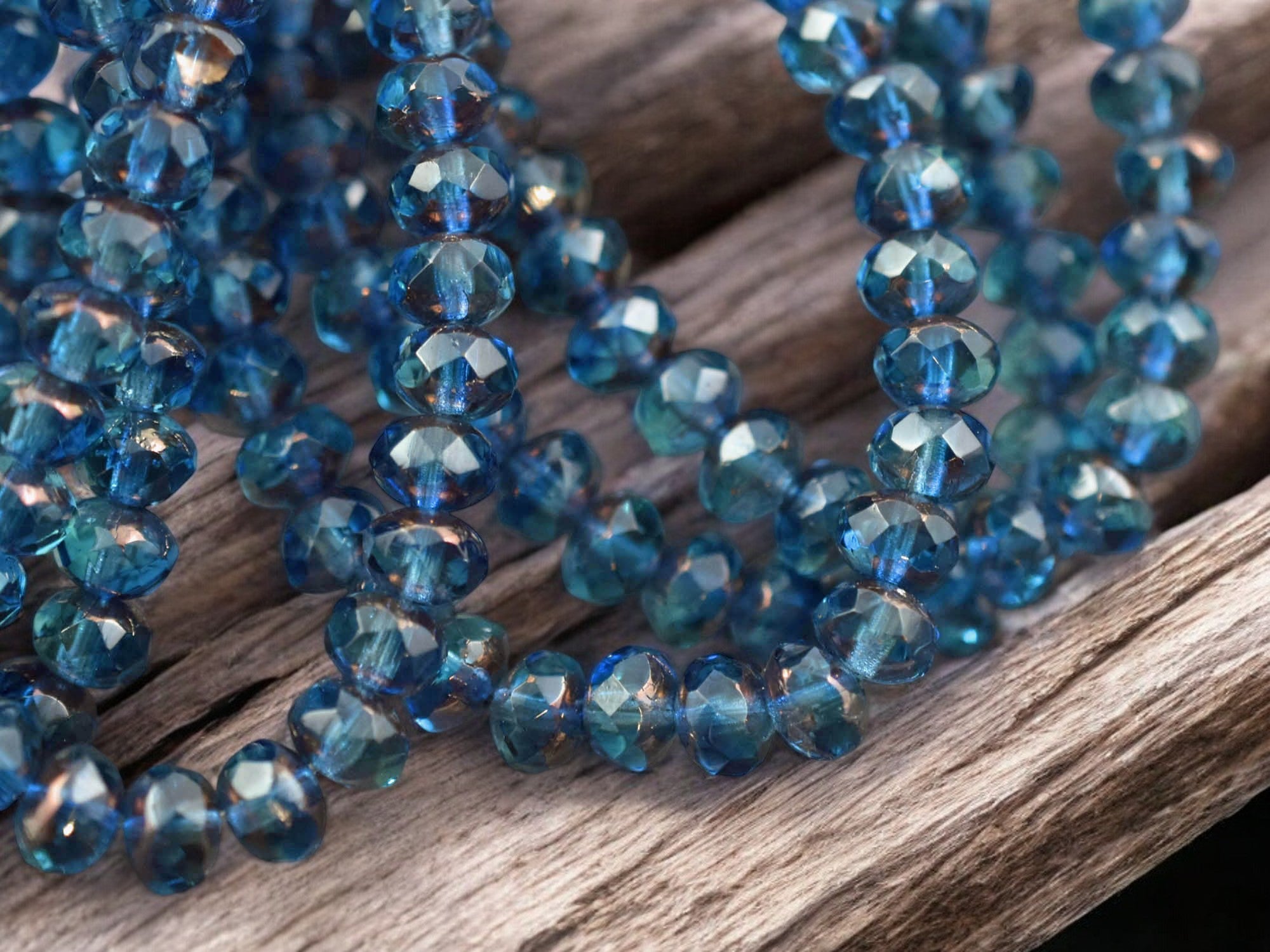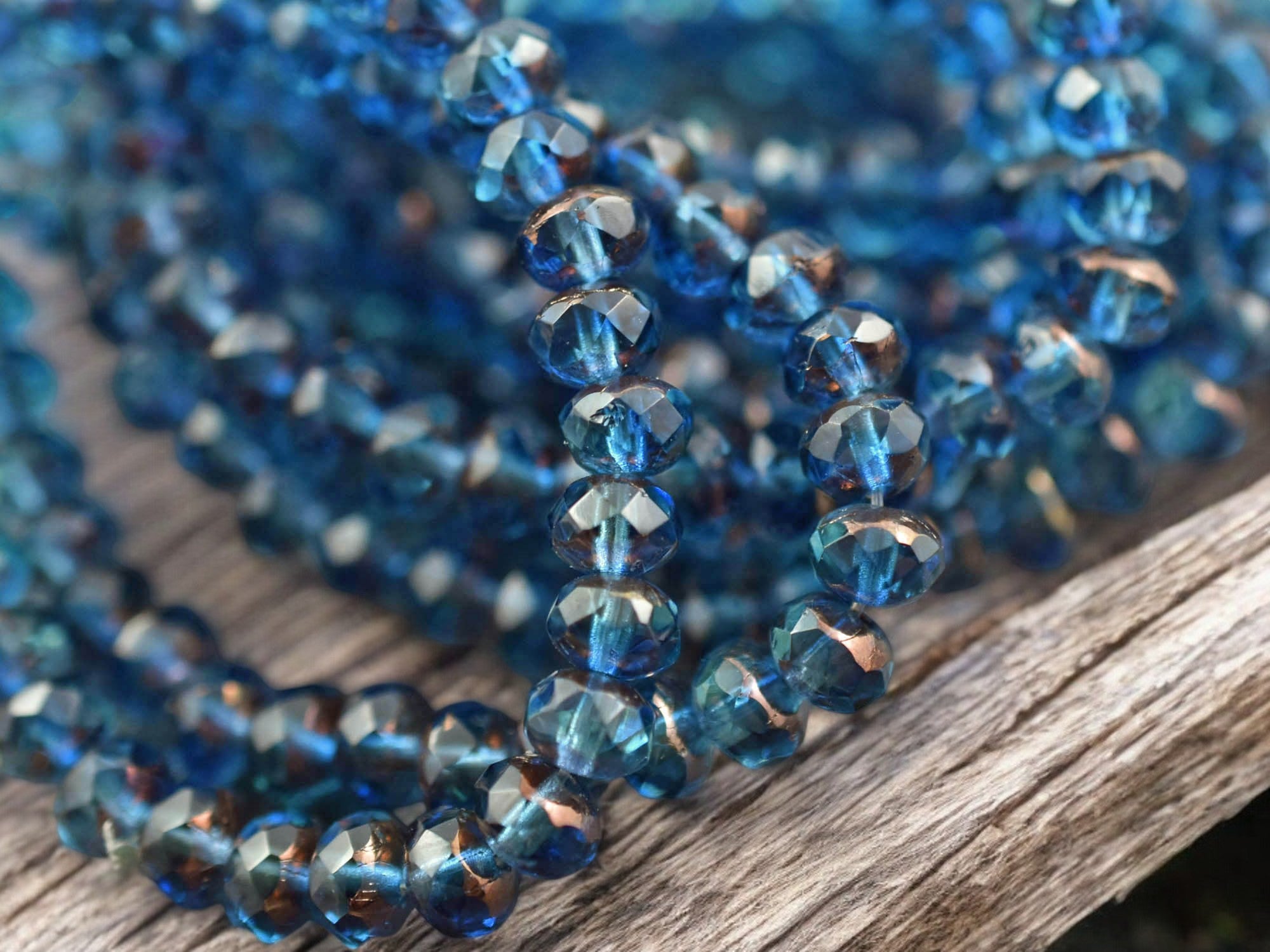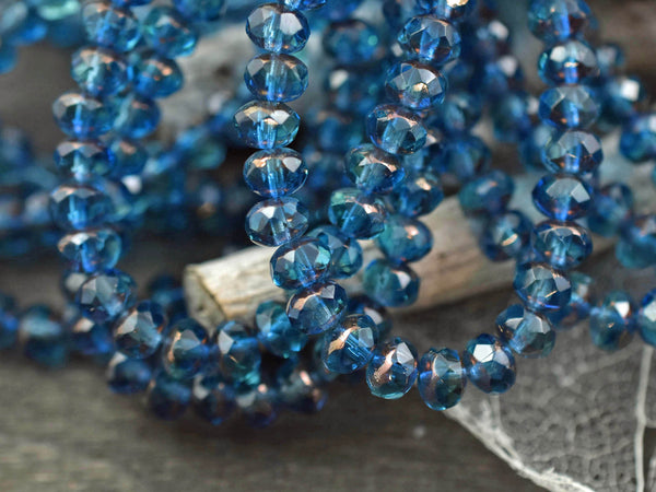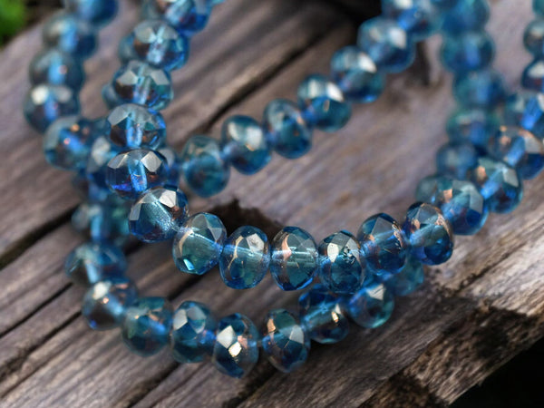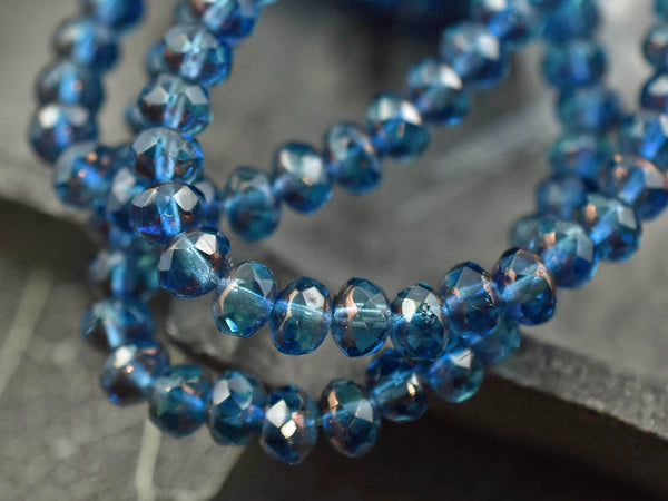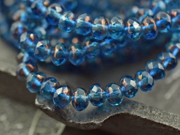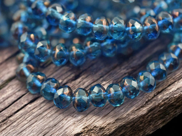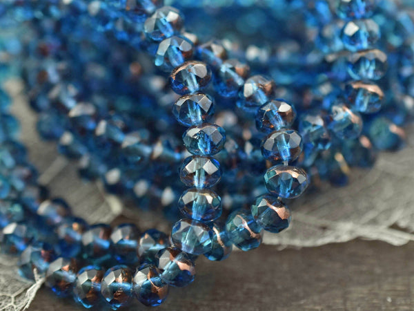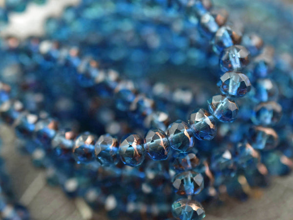 *30* 3x5mm Bronze Washed Pacific Blue Fire Polished Rondelle Beads
