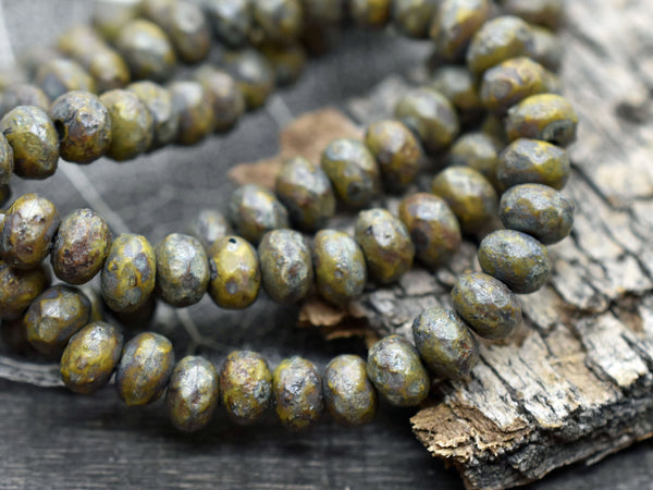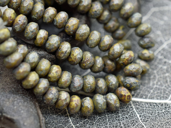 *30* 3x5mm Etched Chartreuse Picasso Fire Polished Rondelle Beads