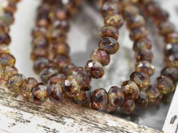 *30* 3x5mm Fuchsia Amber Picasso Fire Polished Rondelle Beads