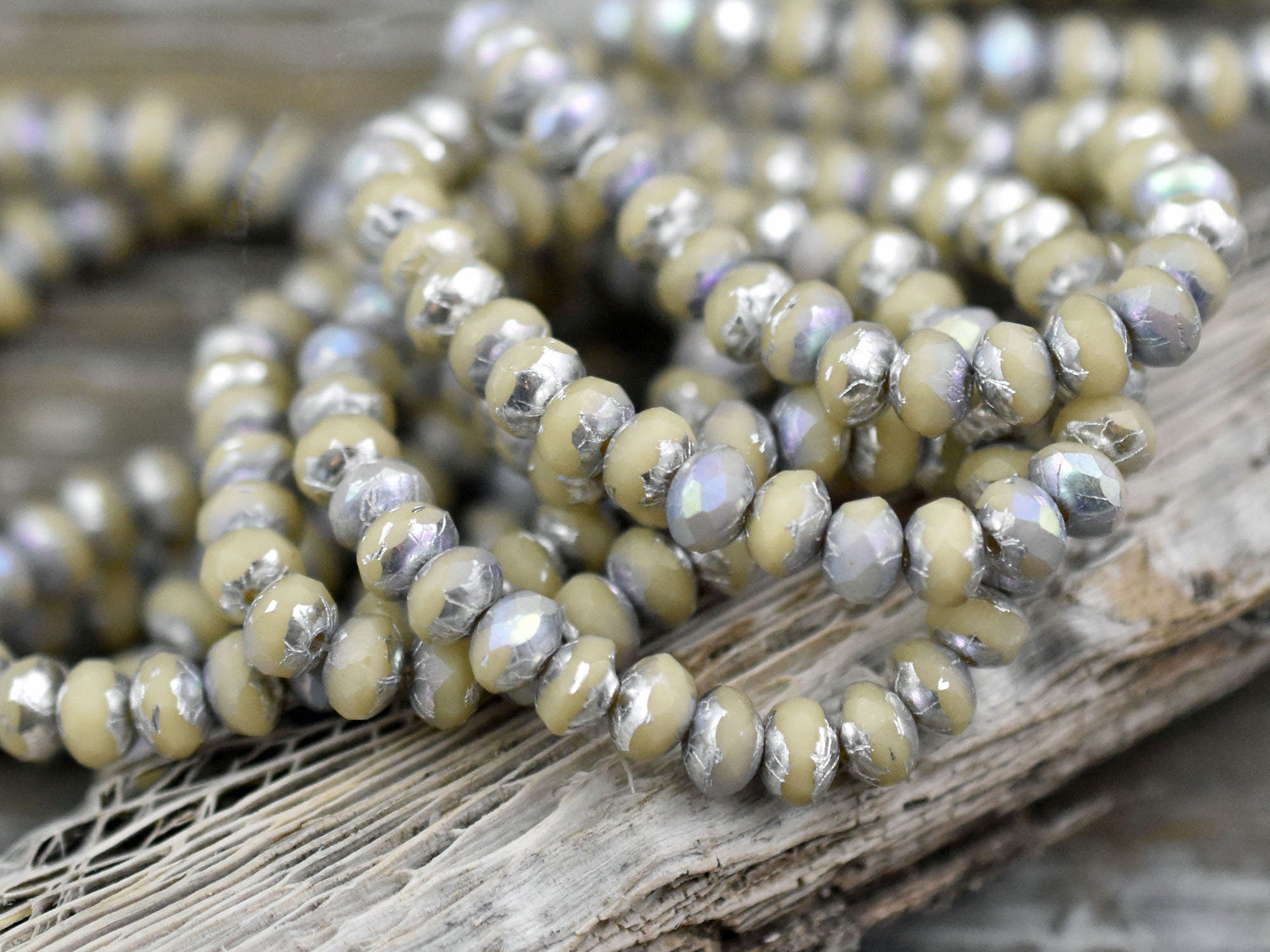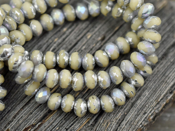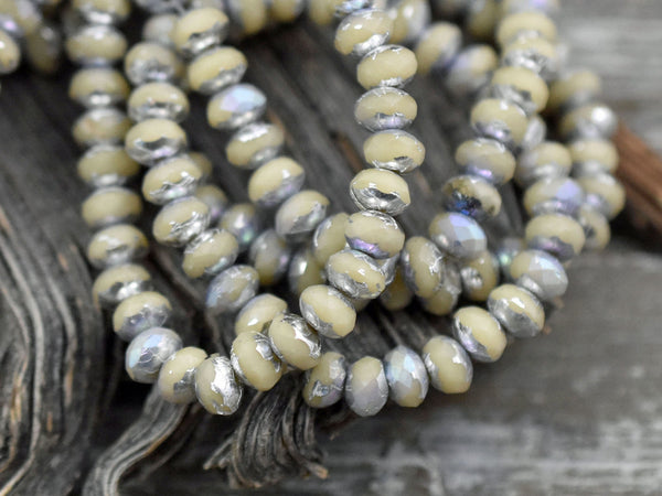 *30* 3x5mm Silver AB Washed Opaque Ivory Fire Polished Rondelle Beads
