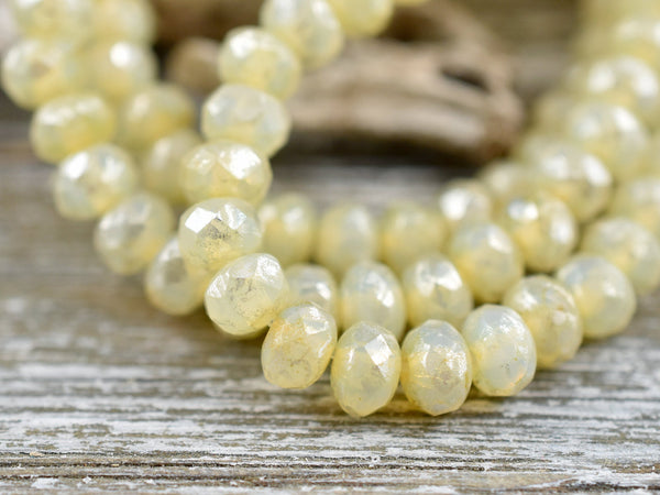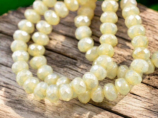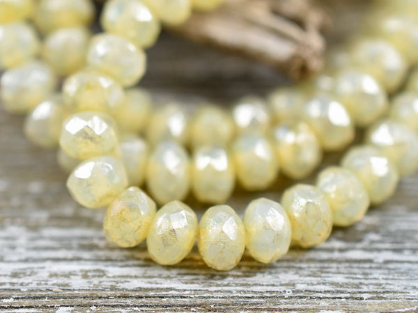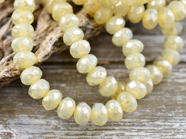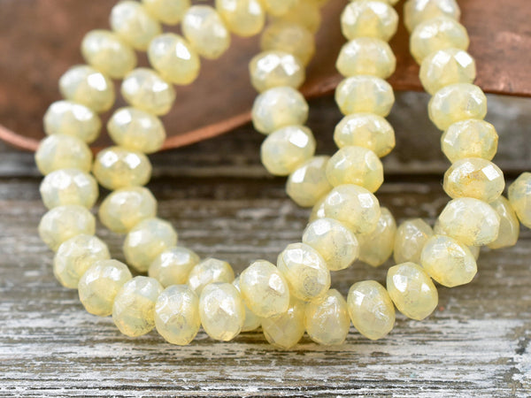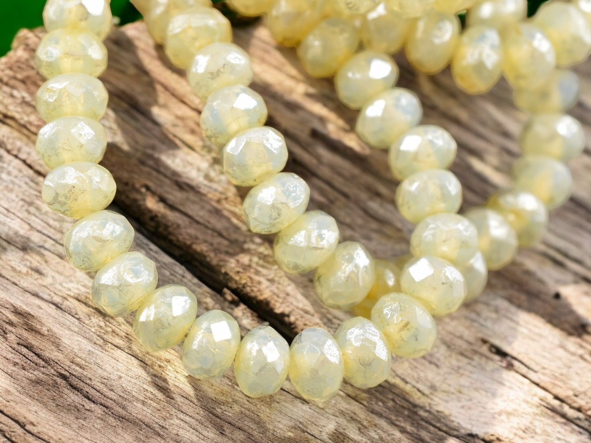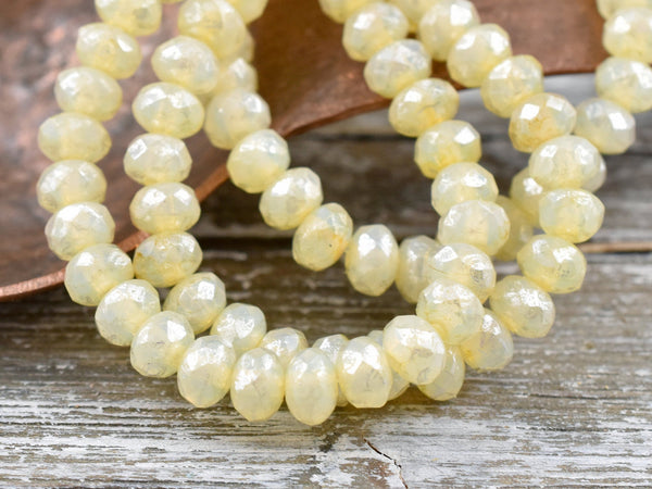 *30* 3x5mm Silver Picasso Washed Yellow Ivory Opal Fire Polished Rondelle Beads