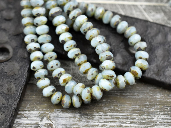 *30* 3x5mm Sky Blue Silk Picasso Fire Polished Rondelle Beads