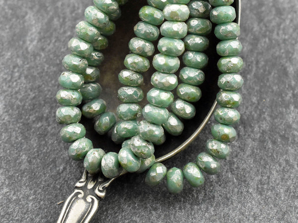 *30* 3x5mm Turquoise Bronze Picasso Fire Polished Rondelle Beads