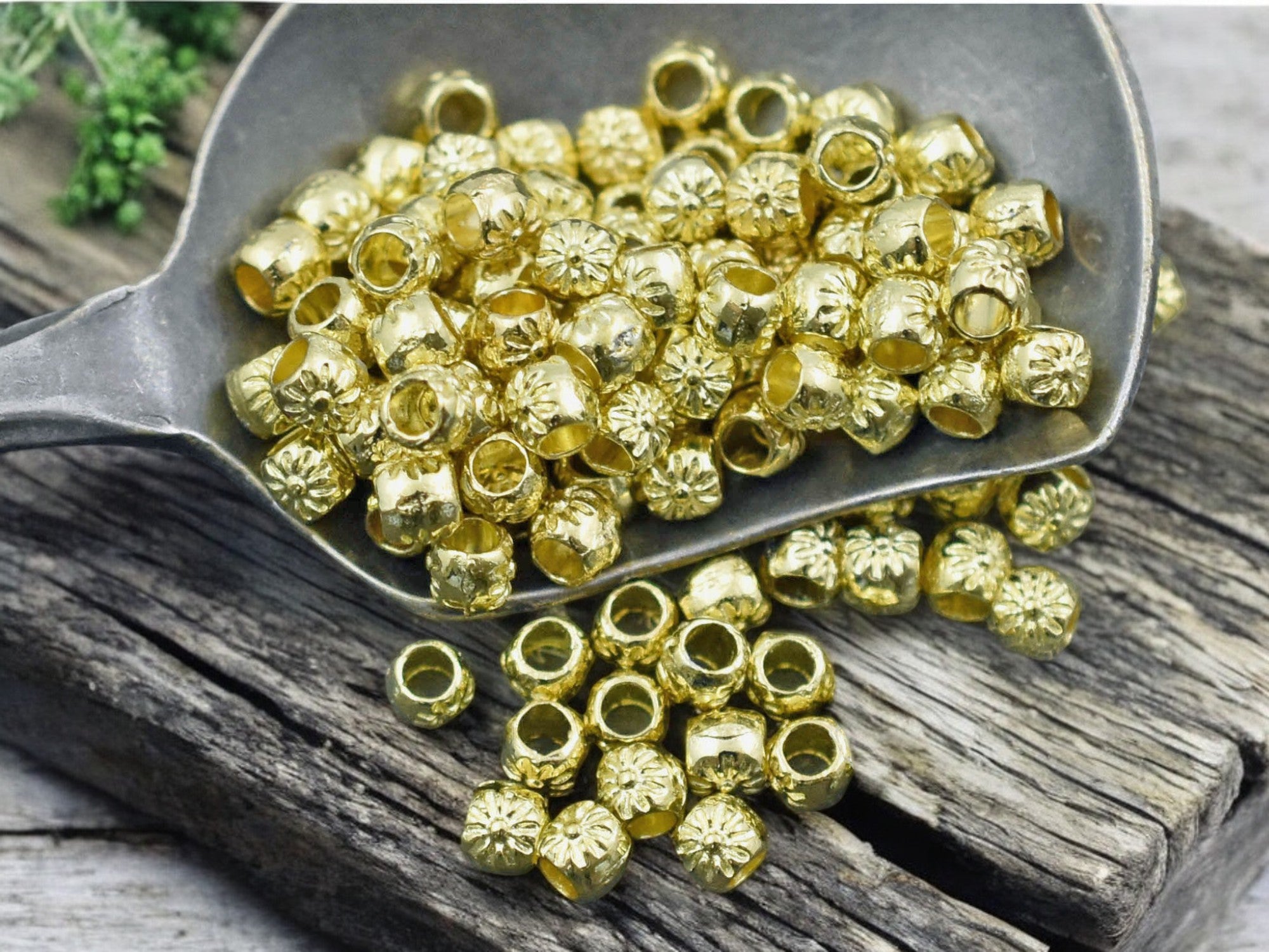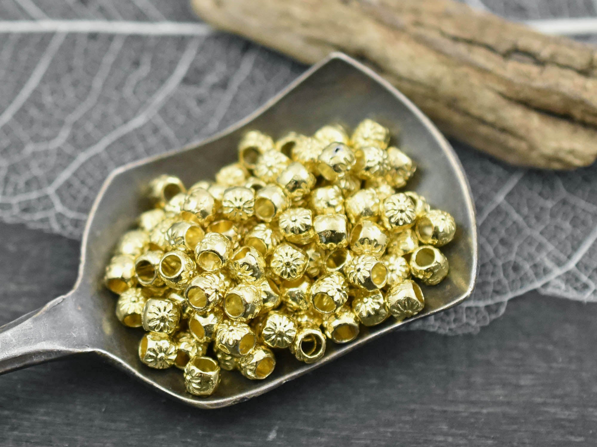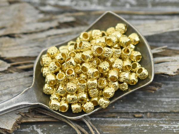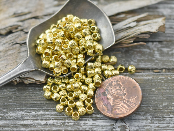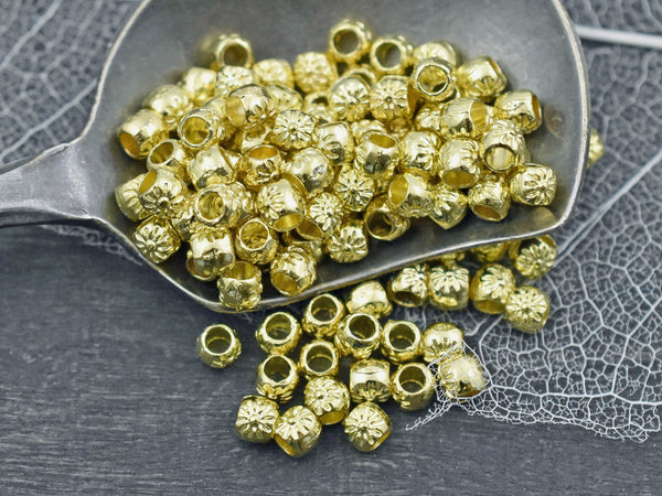 3x3mm Antique Gold Flower Barrel Spacer Beads -- Choose Your Qty