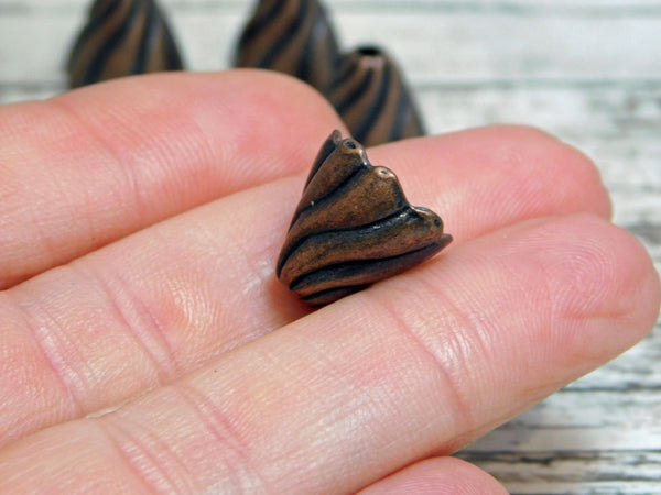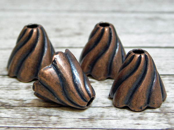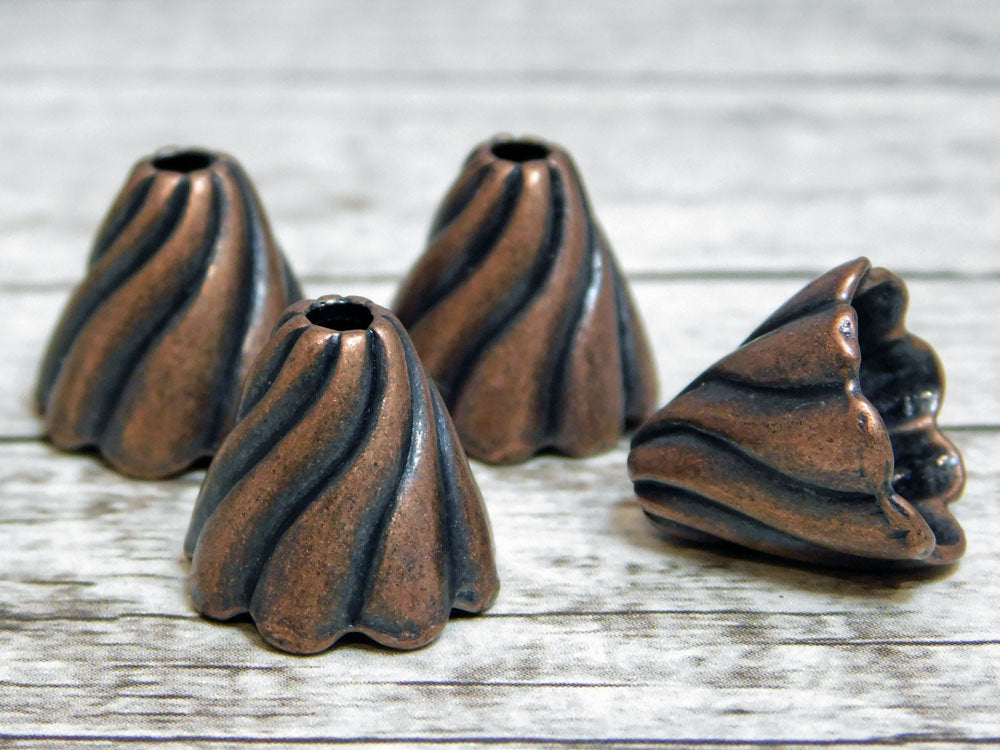 *4* 12x13mm Antique Copper Scalloped Bead Caps
