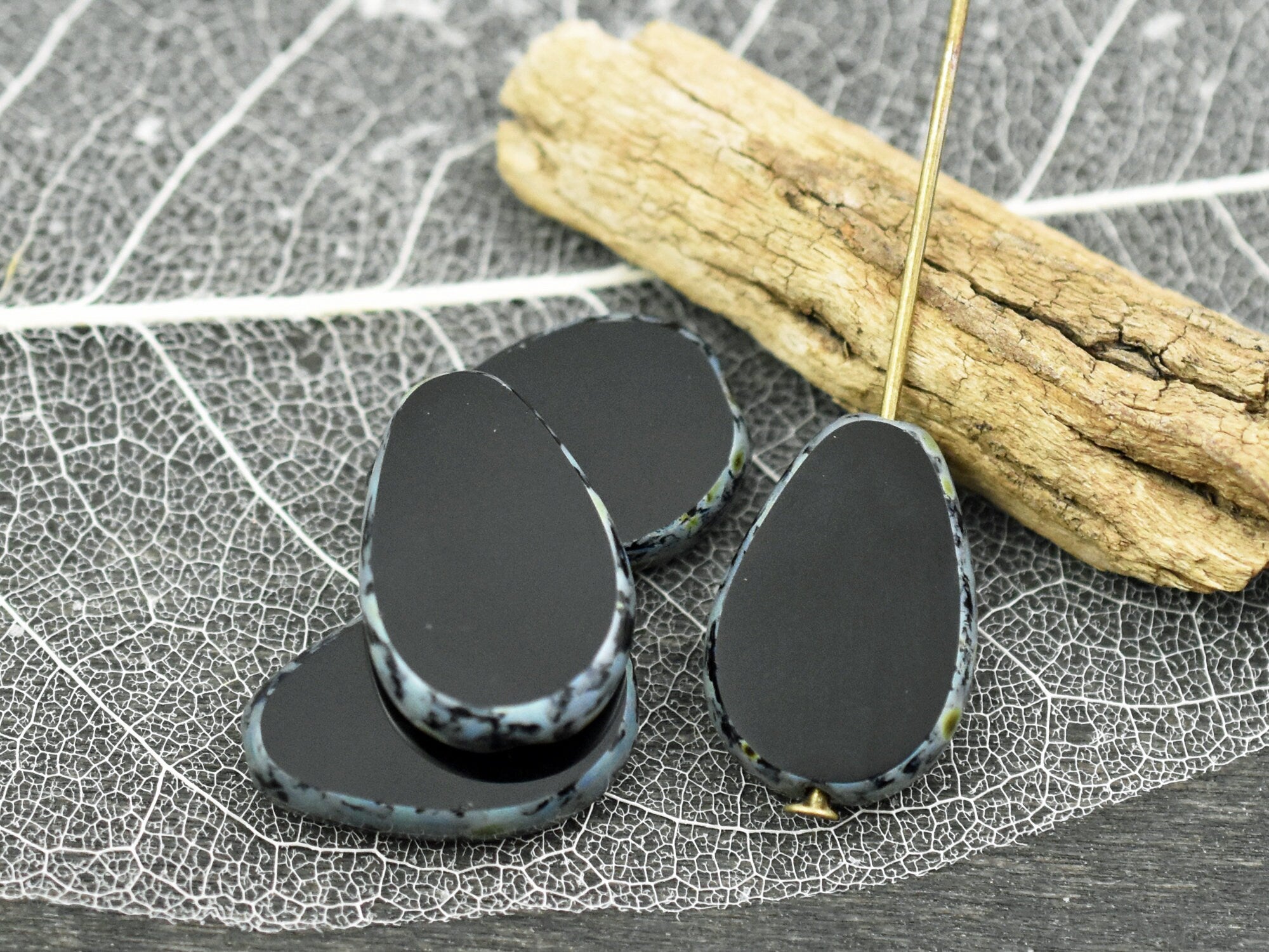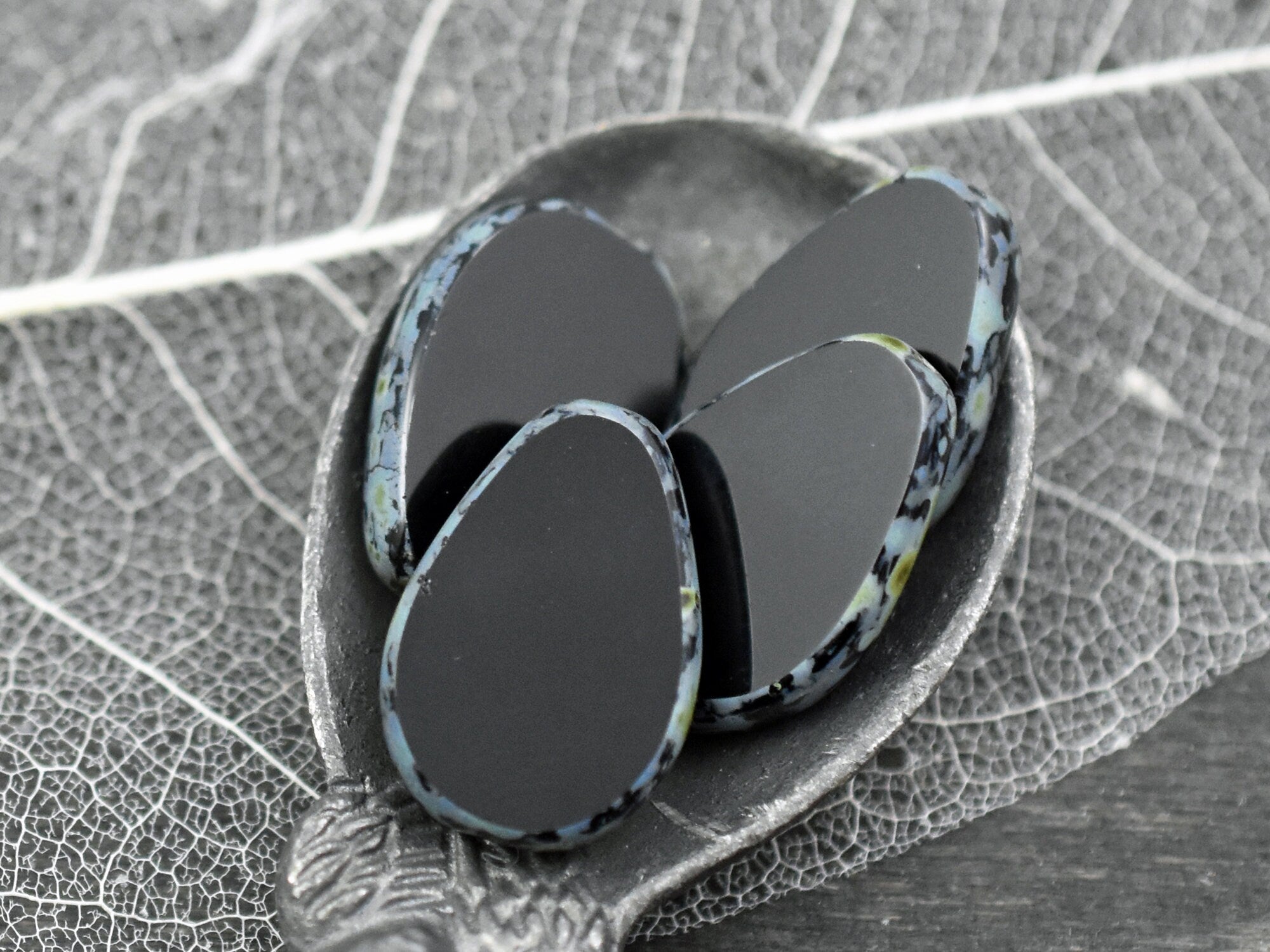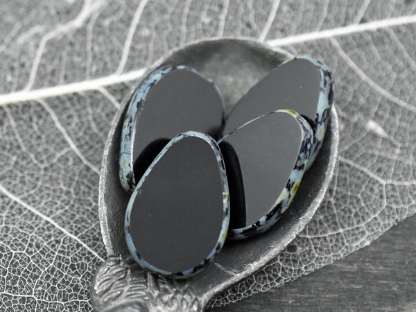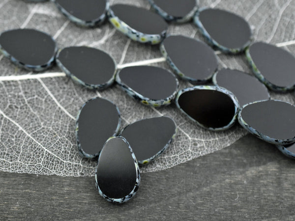*8* 12x18mm Opaque Jet Black Travertine Table Cut Flat Teardrop Beads