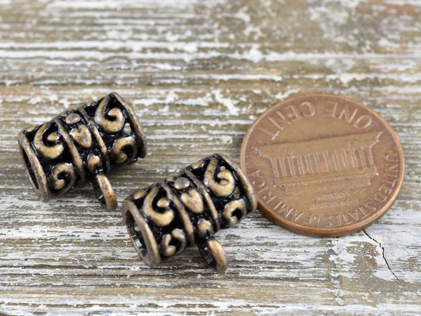 *10* 12x8mm Ant Brass Filigree Dangle Bead Tubes