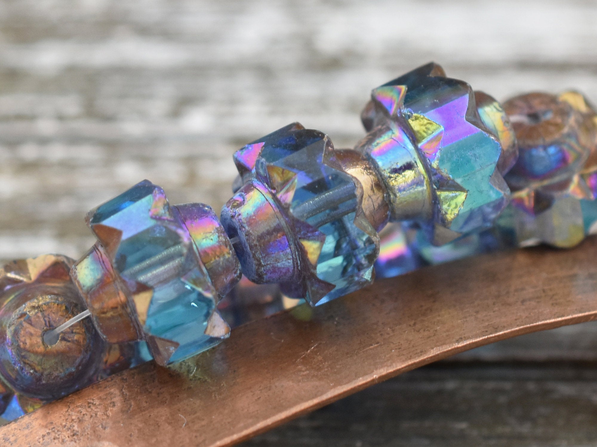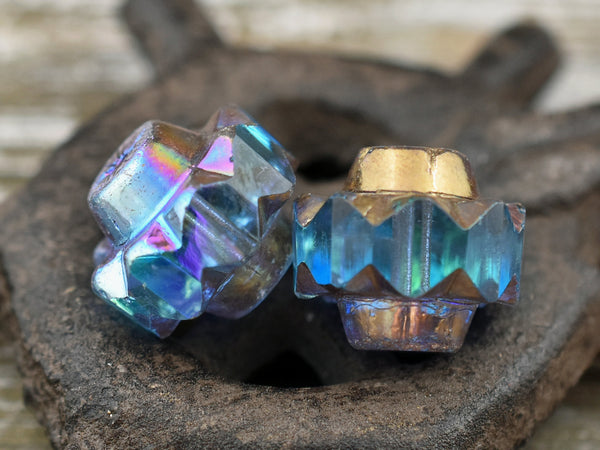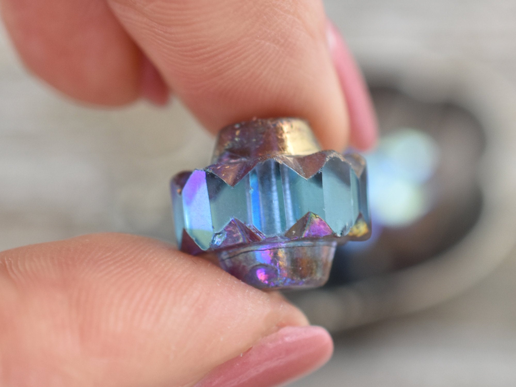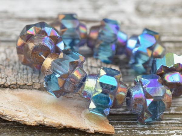 *8* 13x15mm Bronze AB Washed Aqua Faceted Crown Beads