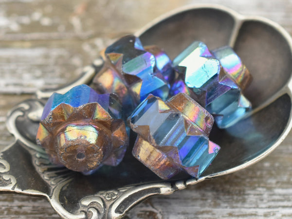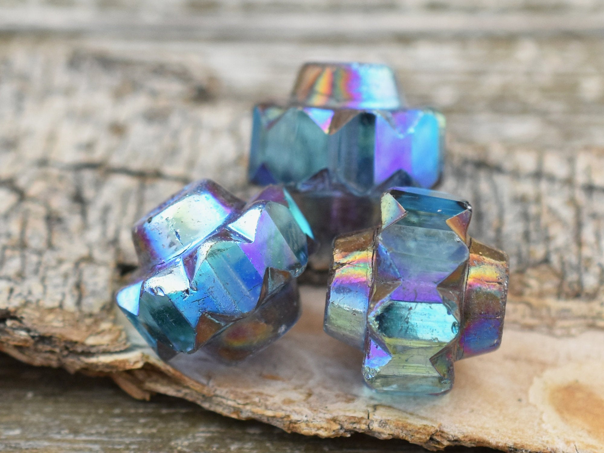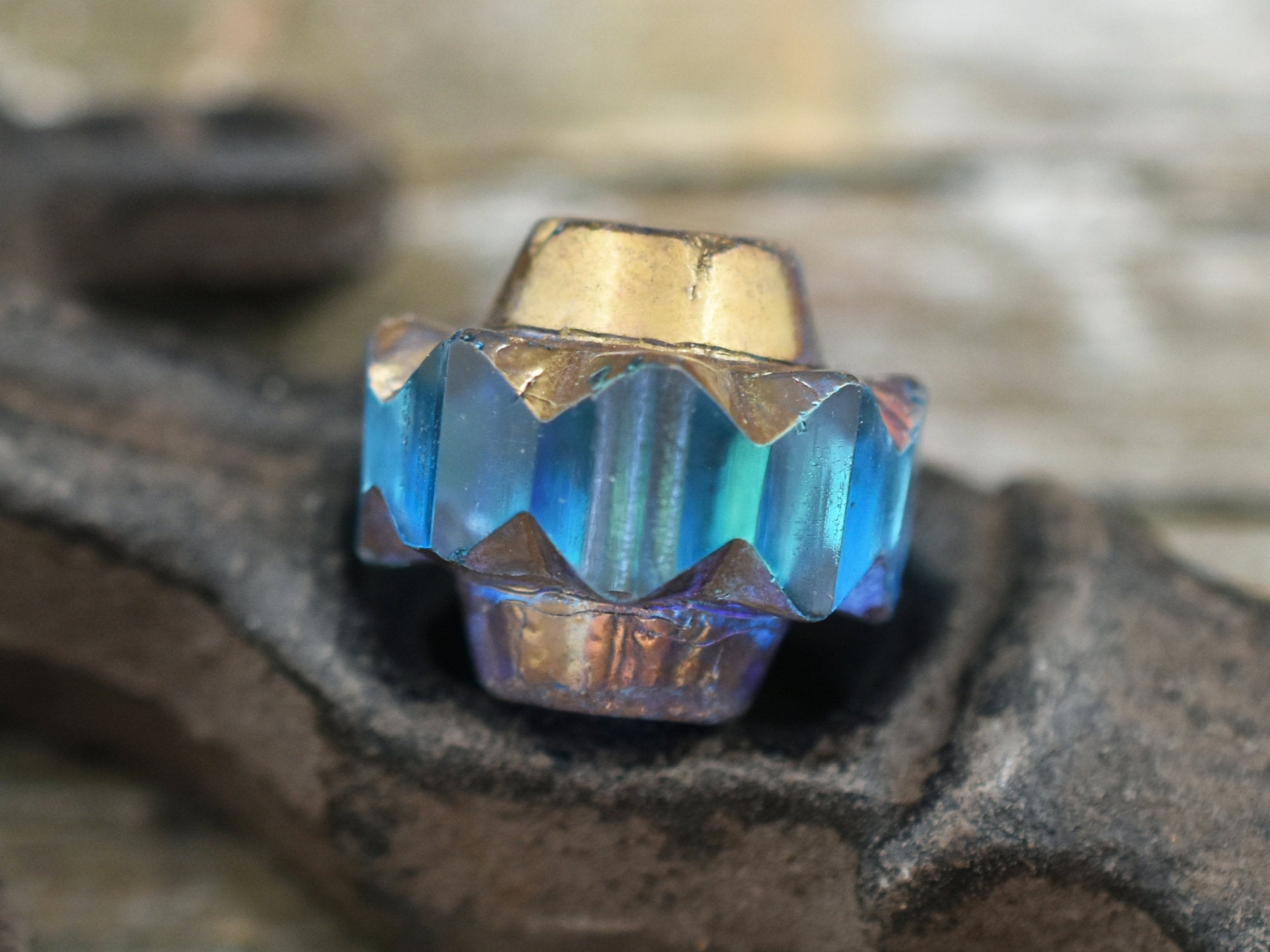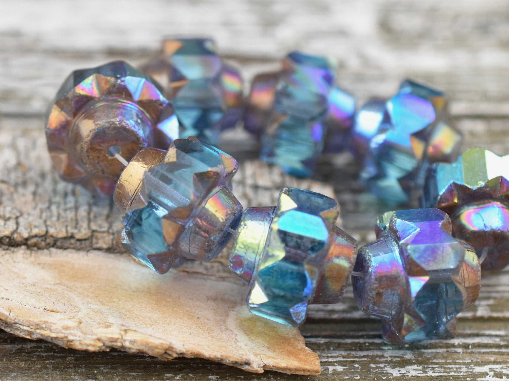*8* 13x15mm Bronze AB Washed Aqua Faceted Crown Beads