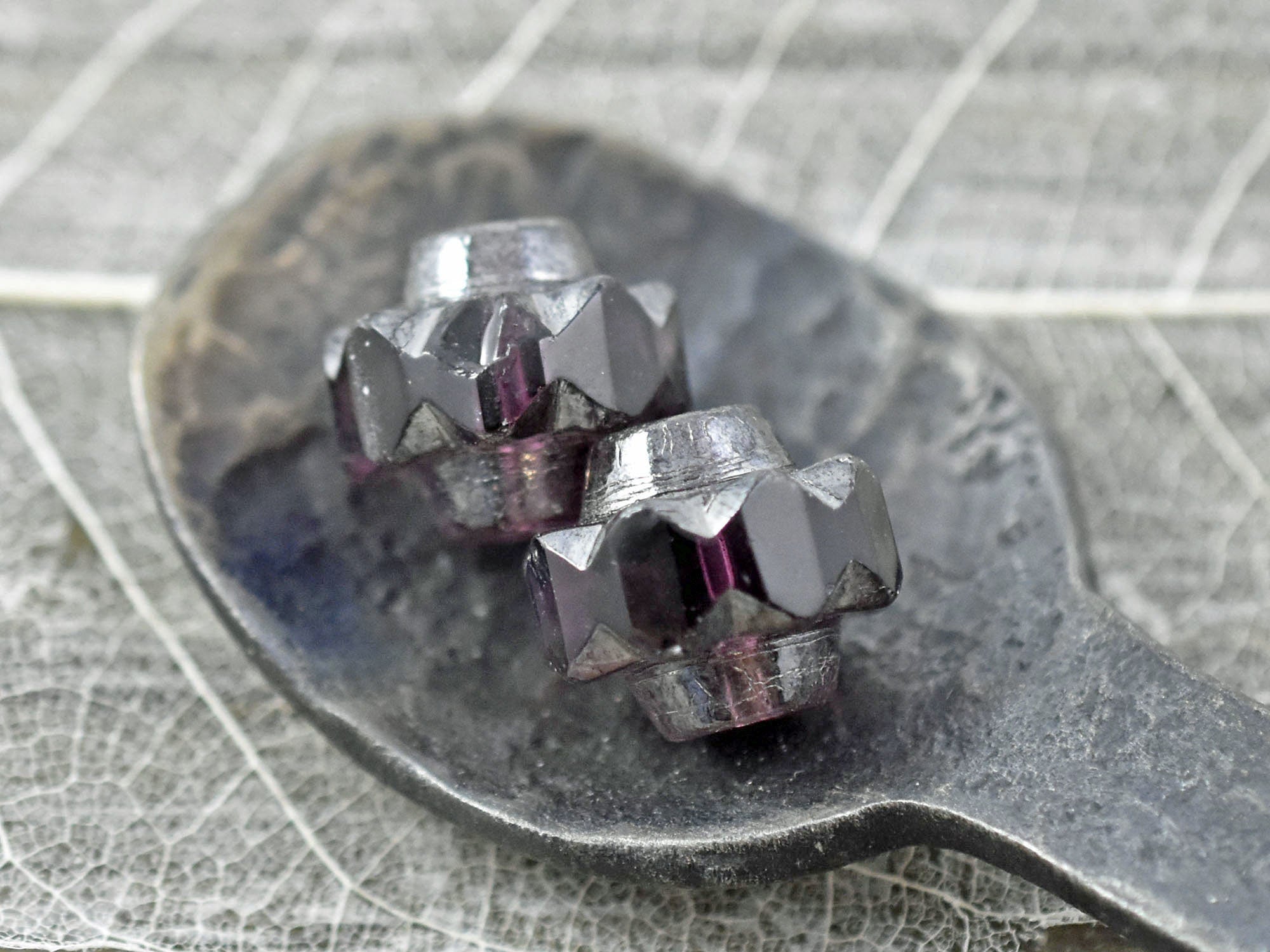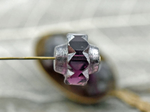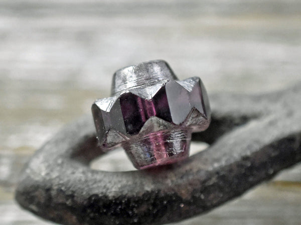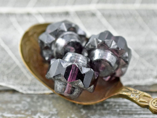 *4* 13x15mm Silver Mercury Washed Amethyst Faceted Crown Beads
