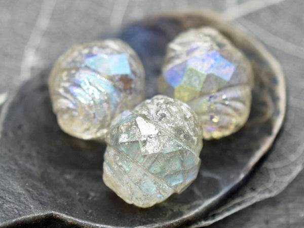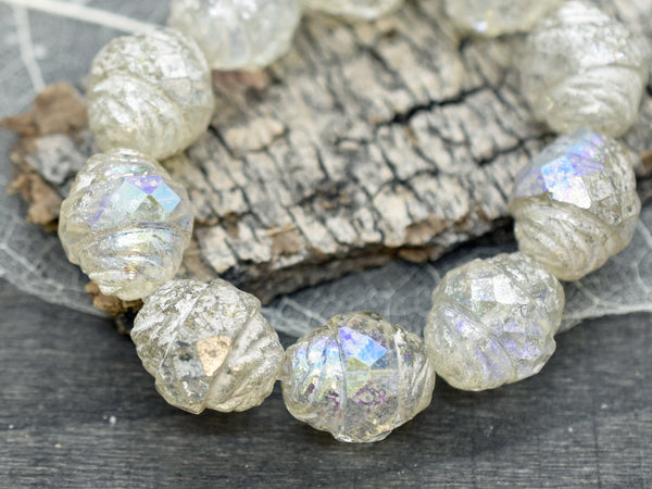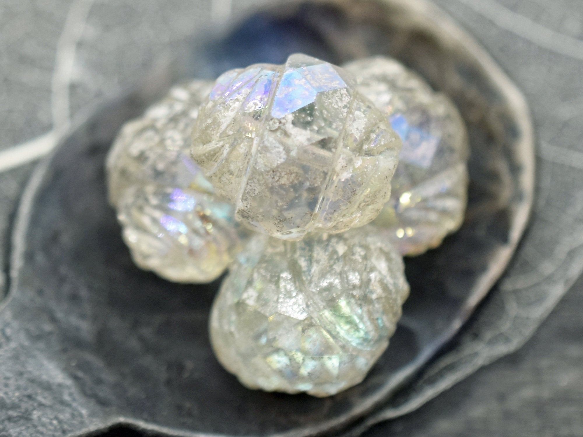 *4* 13x15mm Silver Mercury Washed Crystal Ivory AB Turbine Beads