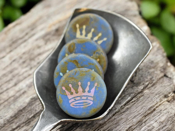 *8* 14mm Laser Etched Matte Blue Turquoise Picasso AB Crown Coin Beads
