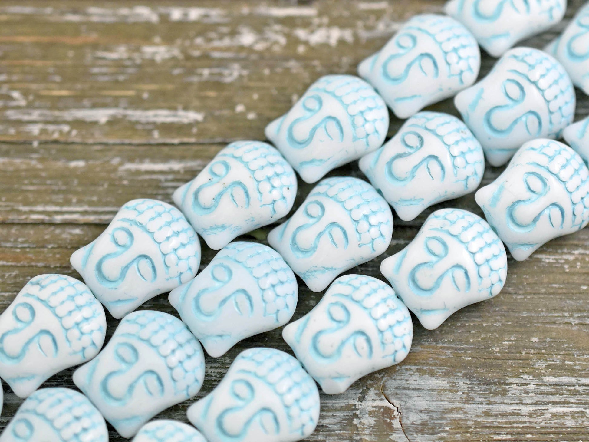 *4* 15x14mm Blue Turquoise Washed Opaque White Buddha Head Beads