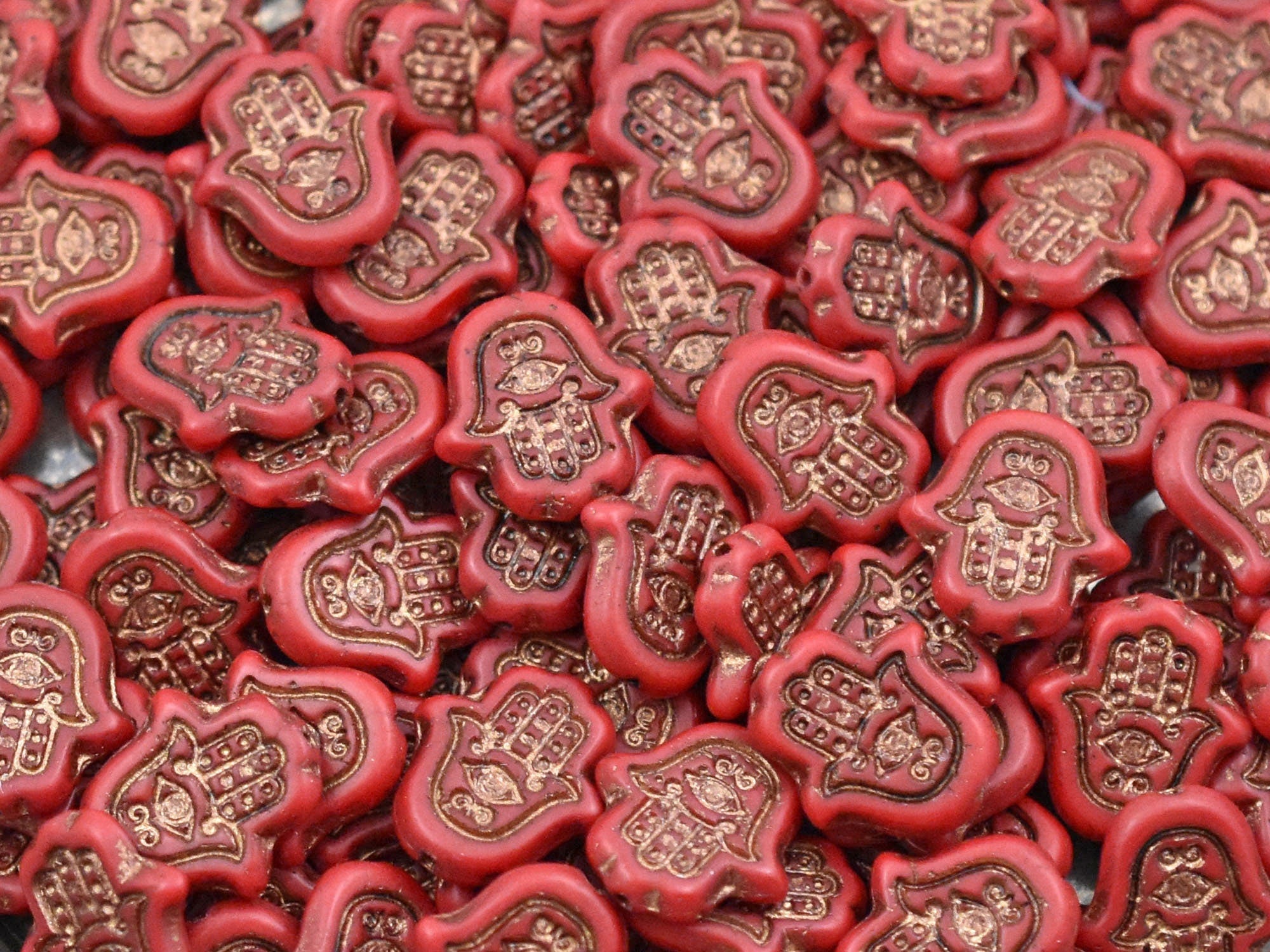*10* 15x14mm Bronze Patina Washed Matte Red Hamsa Hand Beads