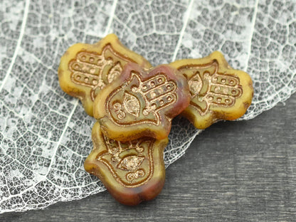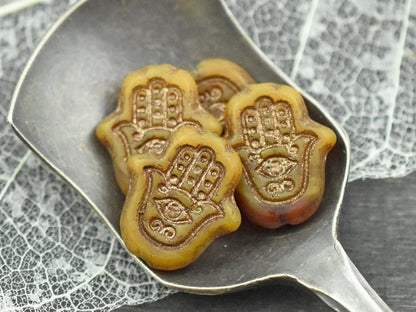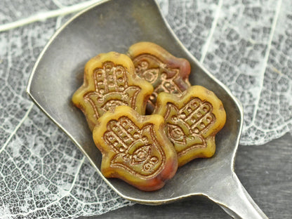 *10* 15x14mm Bronze Patina Washed Matte Varigated Orange Topaz Hamsa Hand Beads