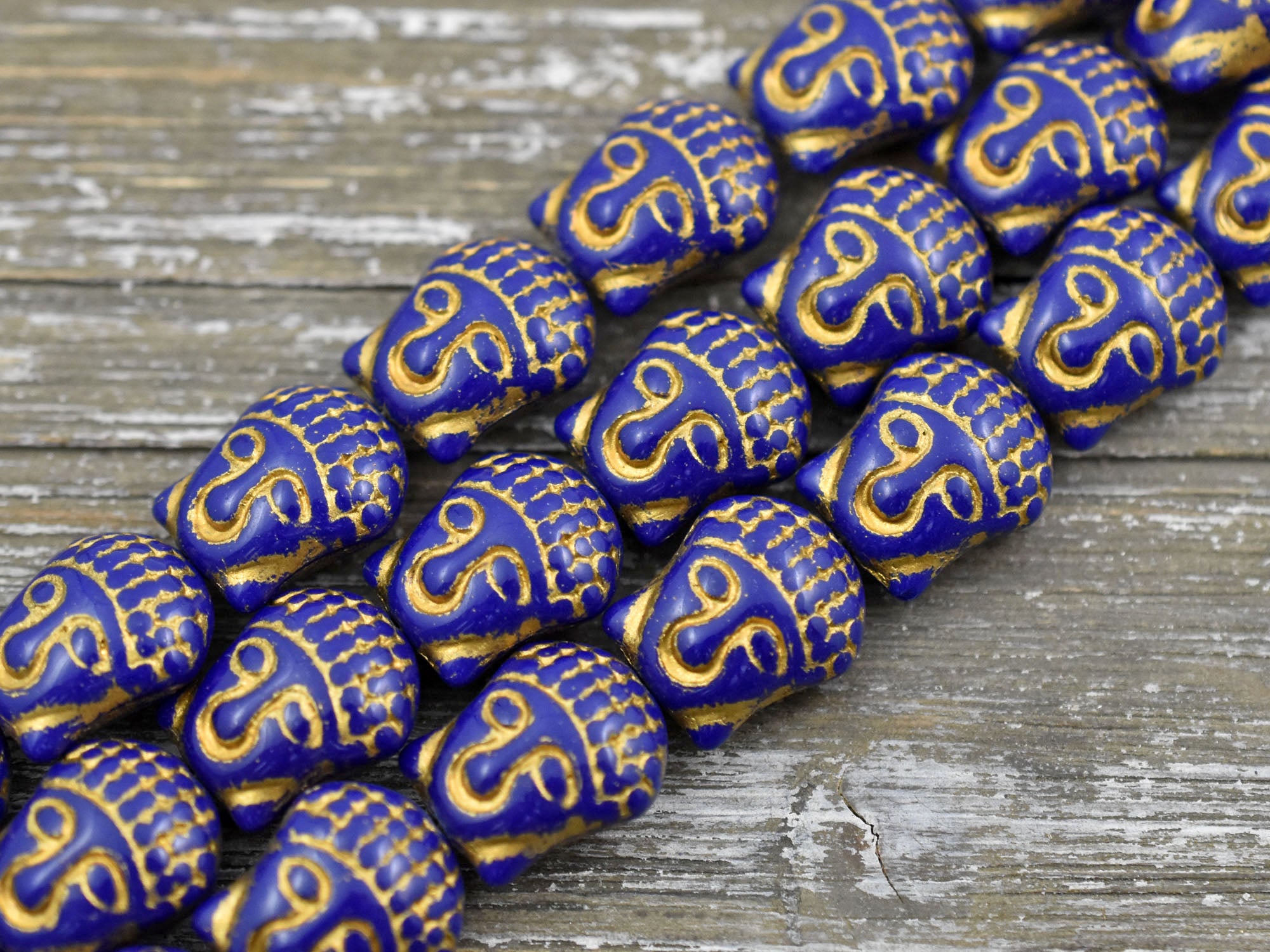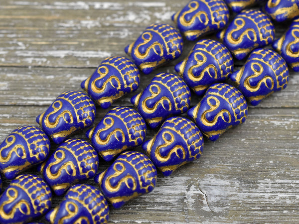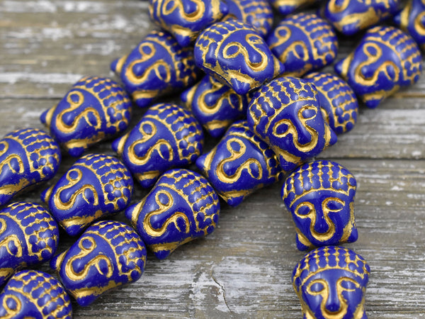 *4* 15x14mm Gold Washed Navy Blue Buddha Head Beads