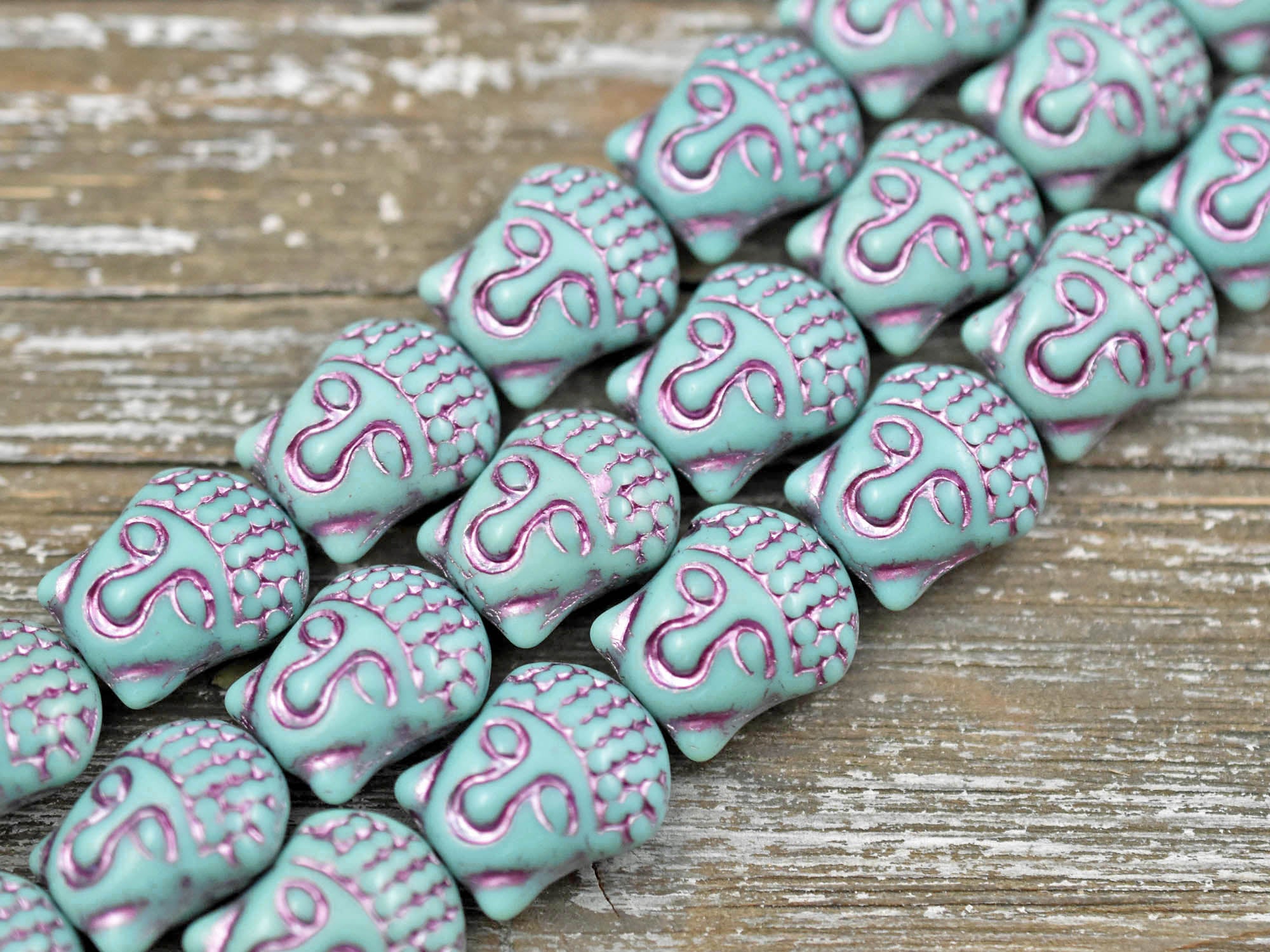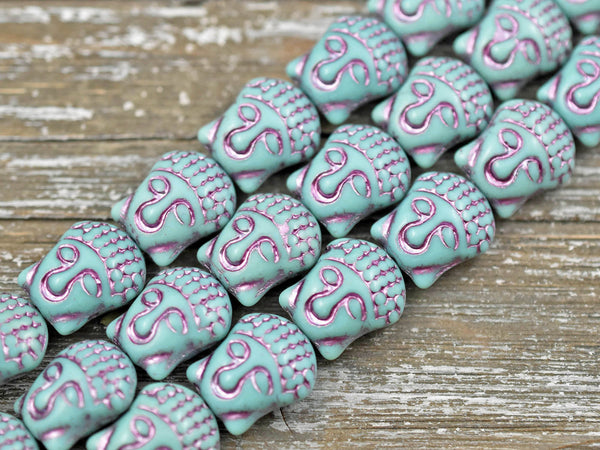 *4* 15x14mm Pink Washed Opaque Turquoise Buddha Head Beads