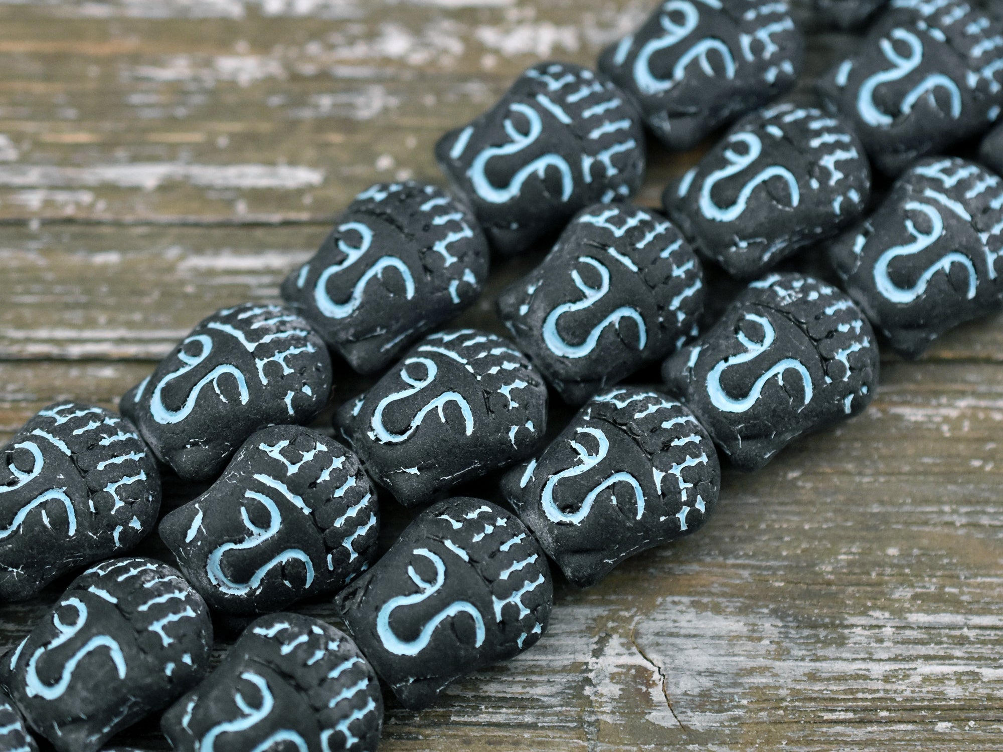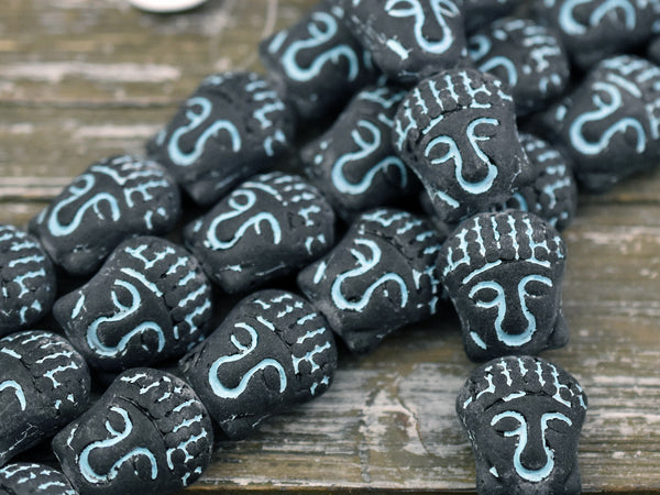 *4* 15x14mm Turquoise Washed Matte Black Buddha Head Beads