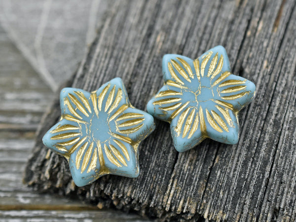 *4* 18mm Bronze Washed Blue Turquoise Star Flower Beads