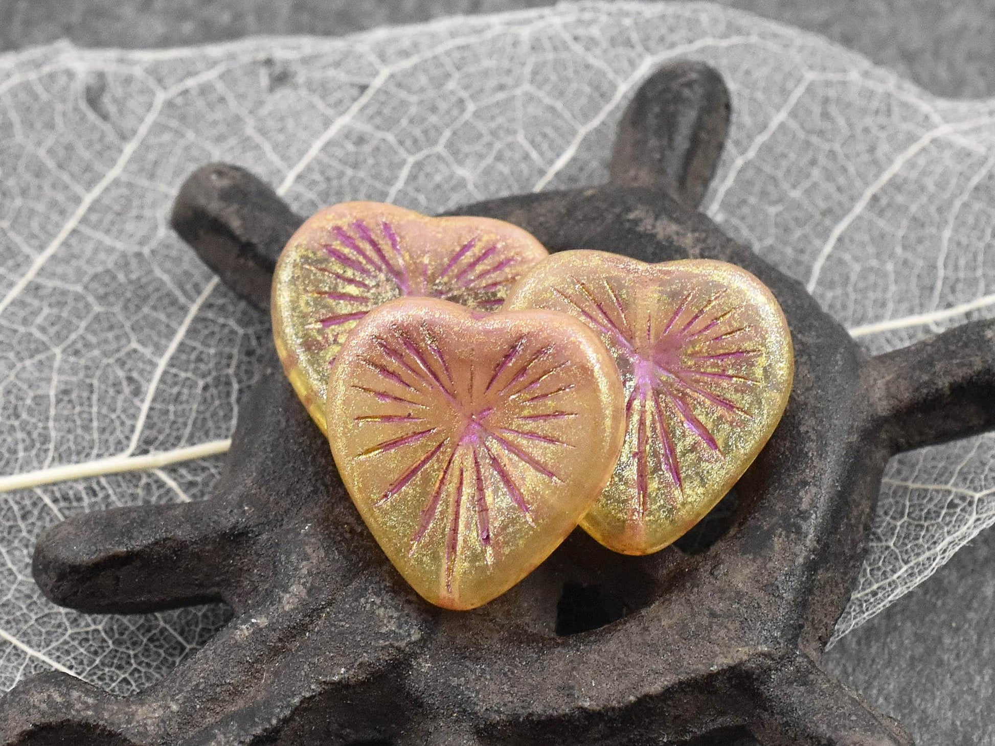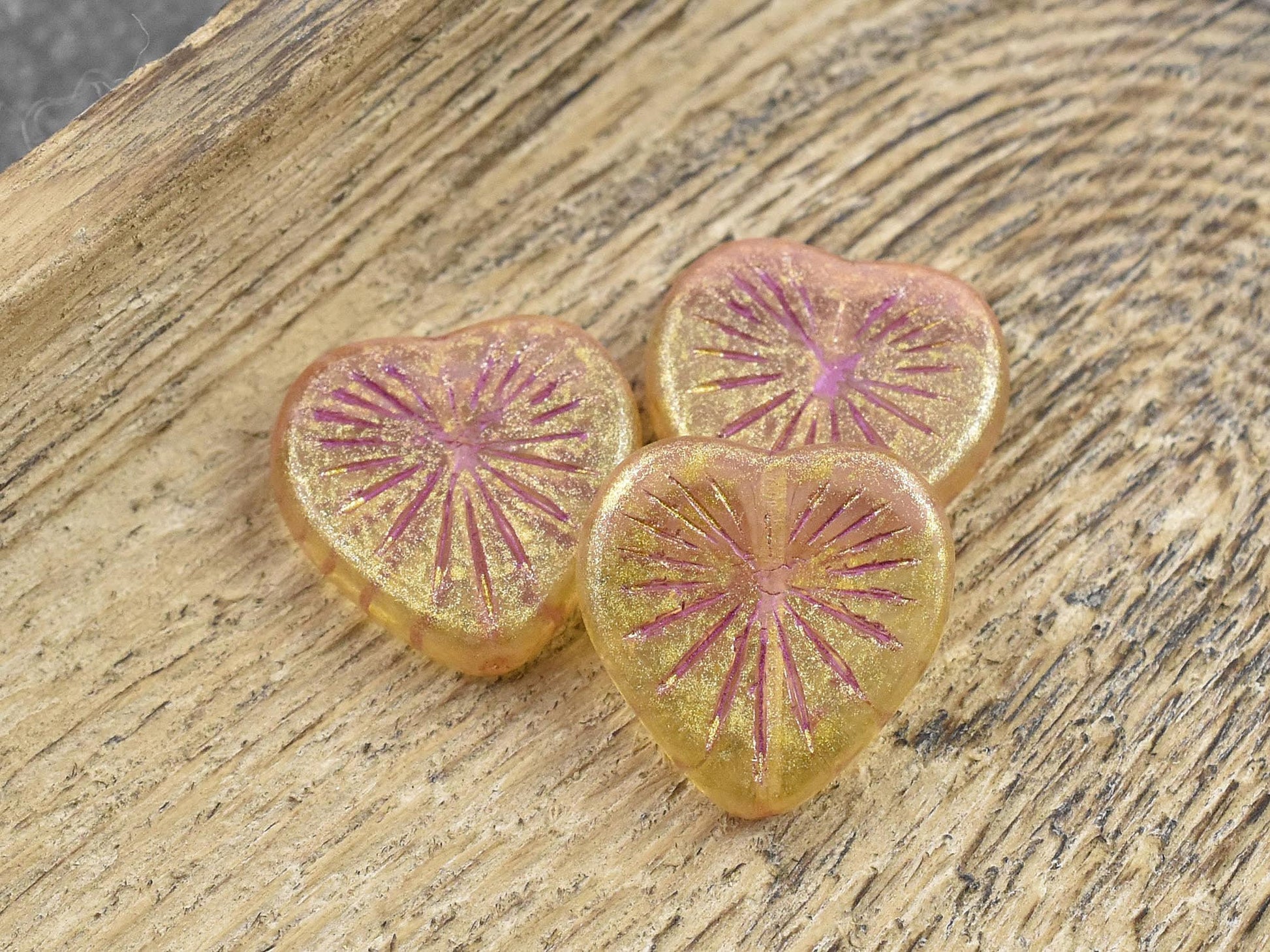 *4* 18mm Pink Washed Gold Crystal Heart Beads