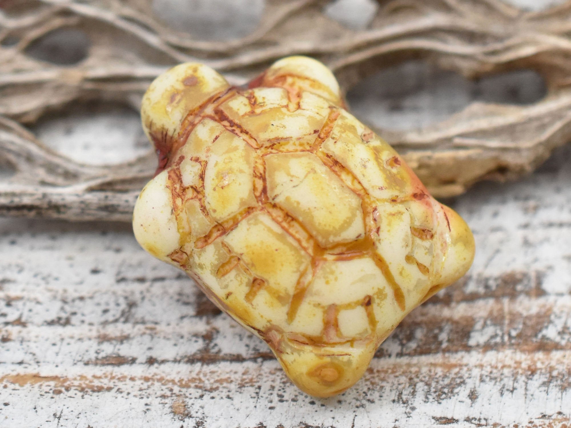 ♥ Type/Shape: Czech pressed glass turtle beads - hole runs top to bottom