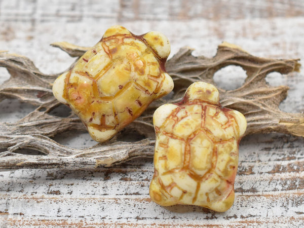 *4* 19x14mm Alabaster Picasso Turtle Beads