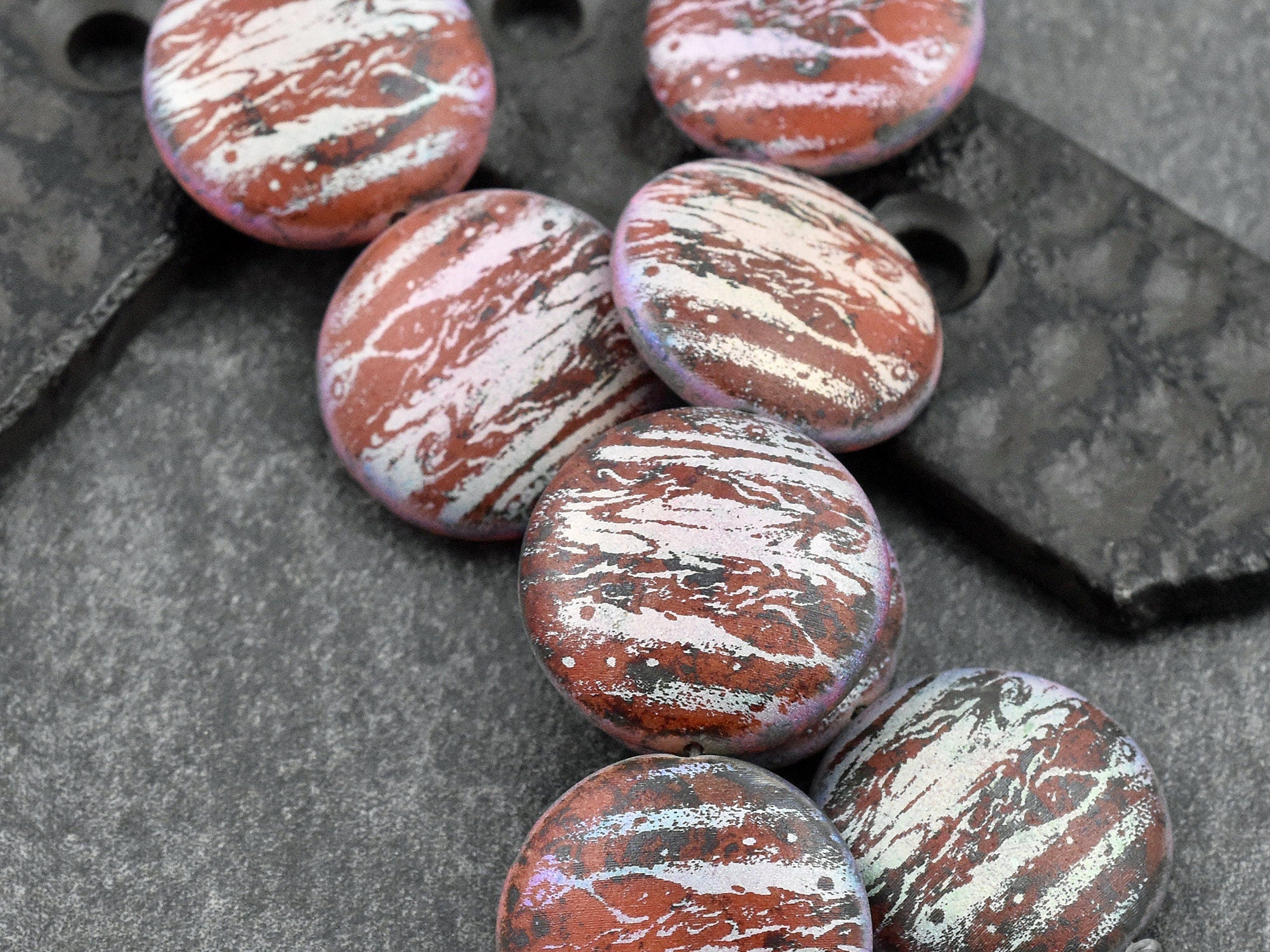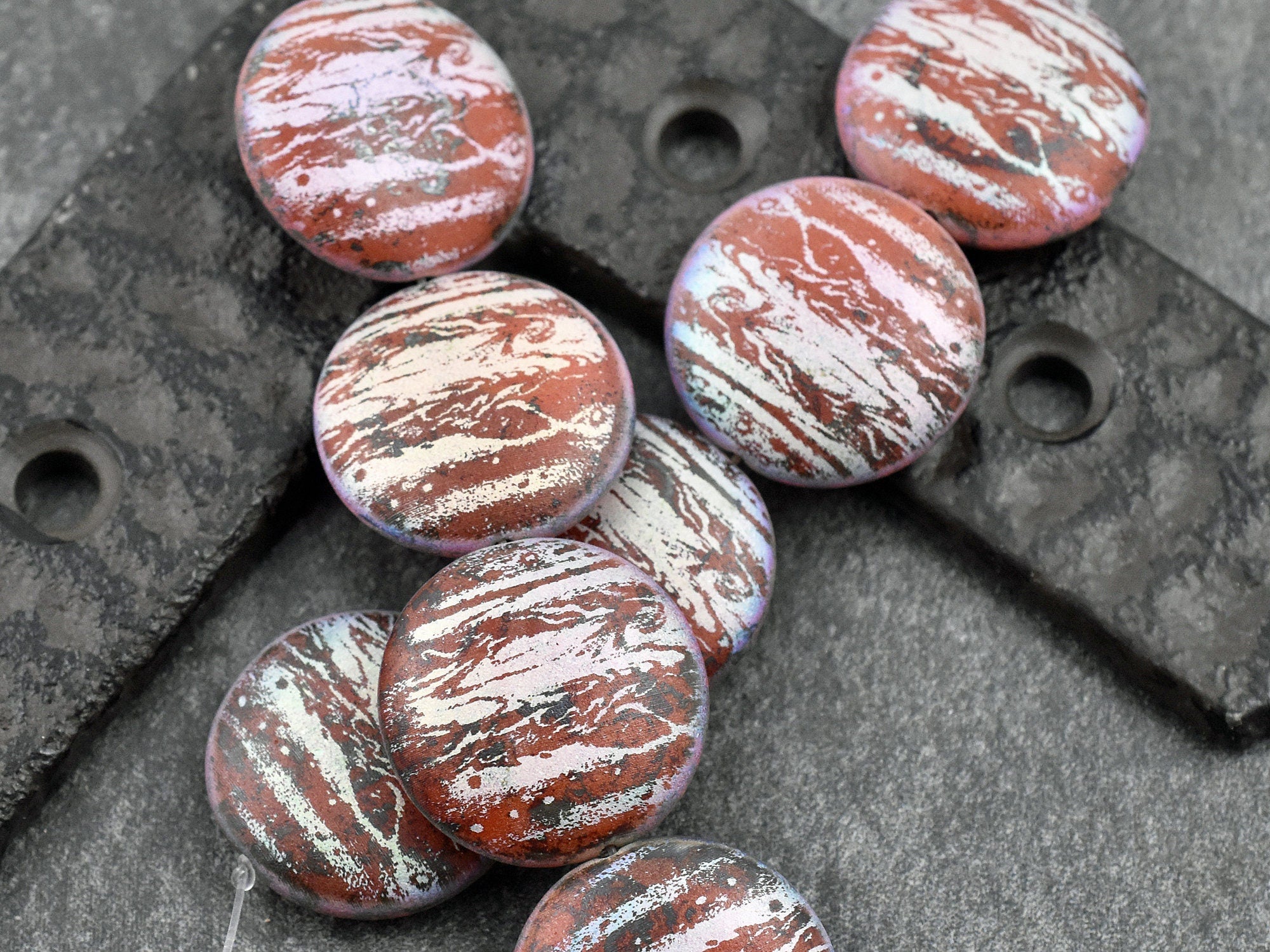 ♥ Type/Shape: Czech glass lentil coin beads with laser etched design (both sides of bead)
