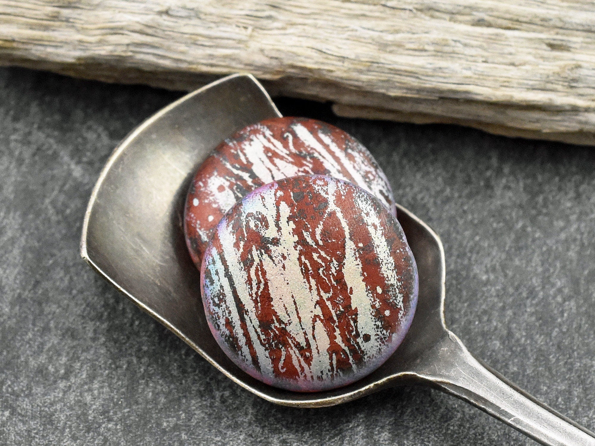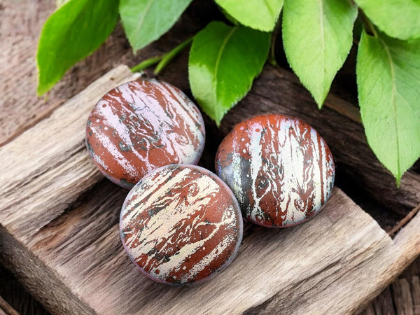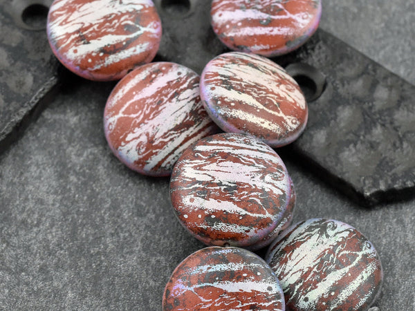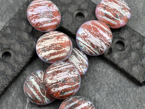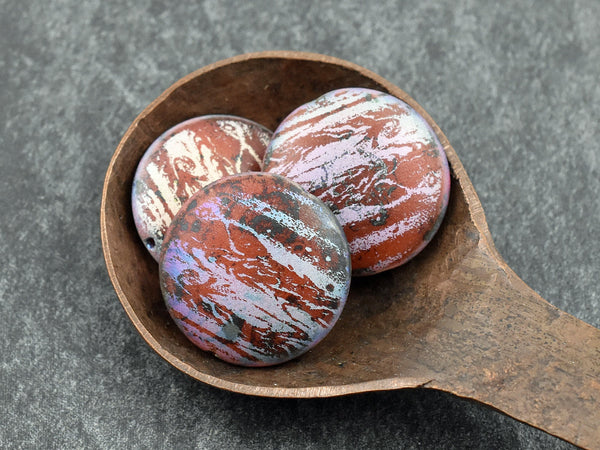 *4* 20mm Satin Matte Red AB Laser Tattoo Lentil Beads