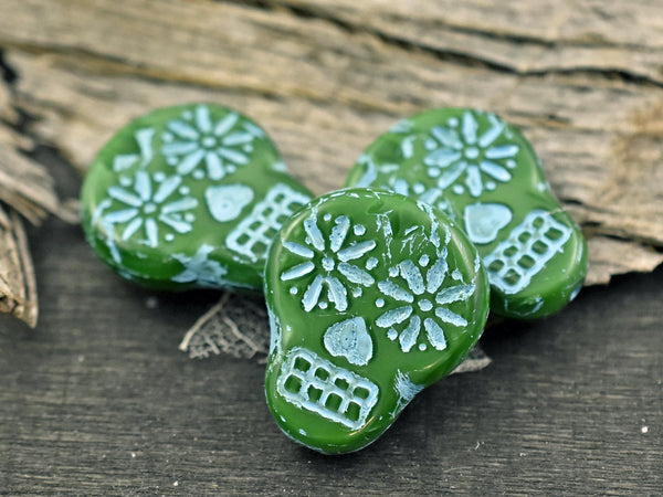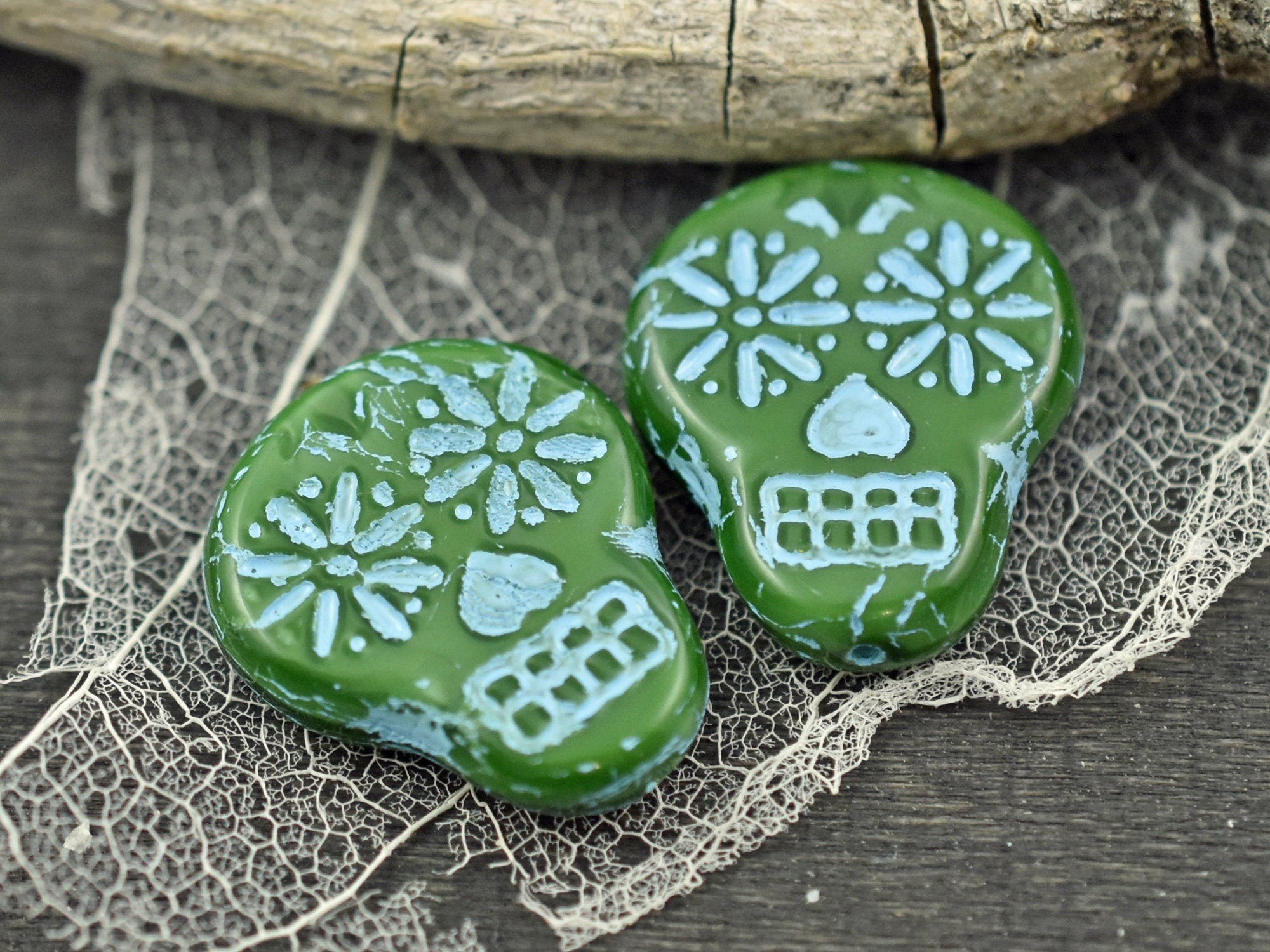 *10* 20x17mm Turquoise Washed Green Silk Sugar Skull Beads