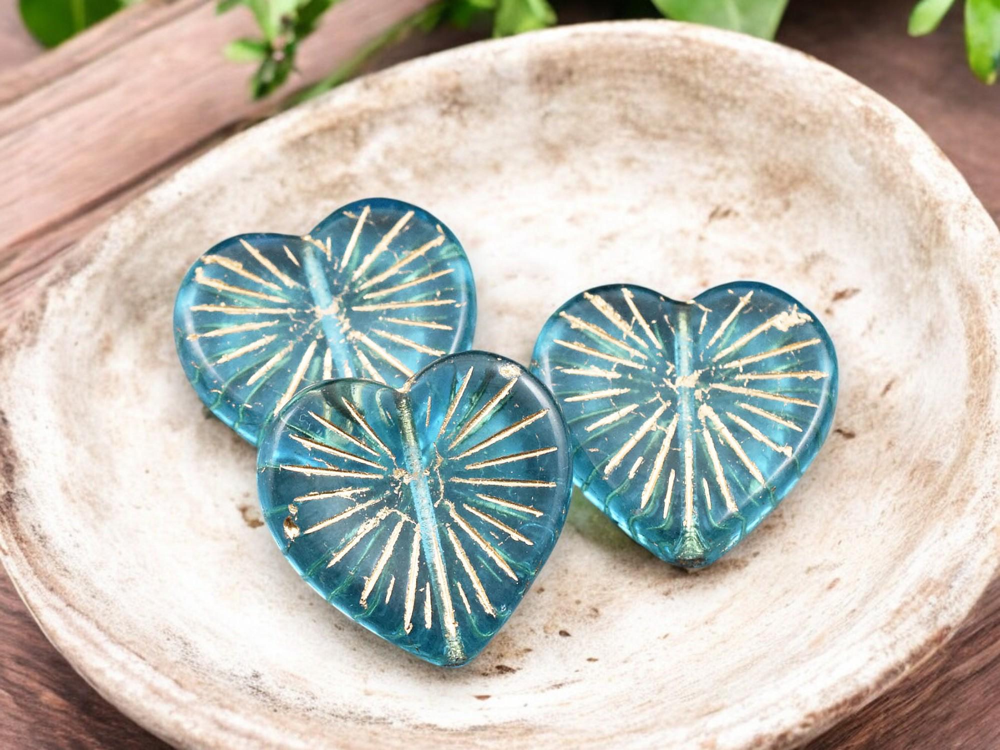 *4* 22mm Bronze Washed Blue Aqua Heart Beads