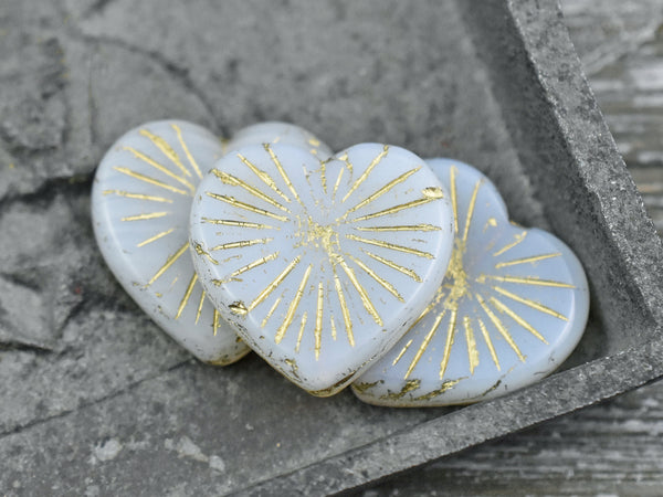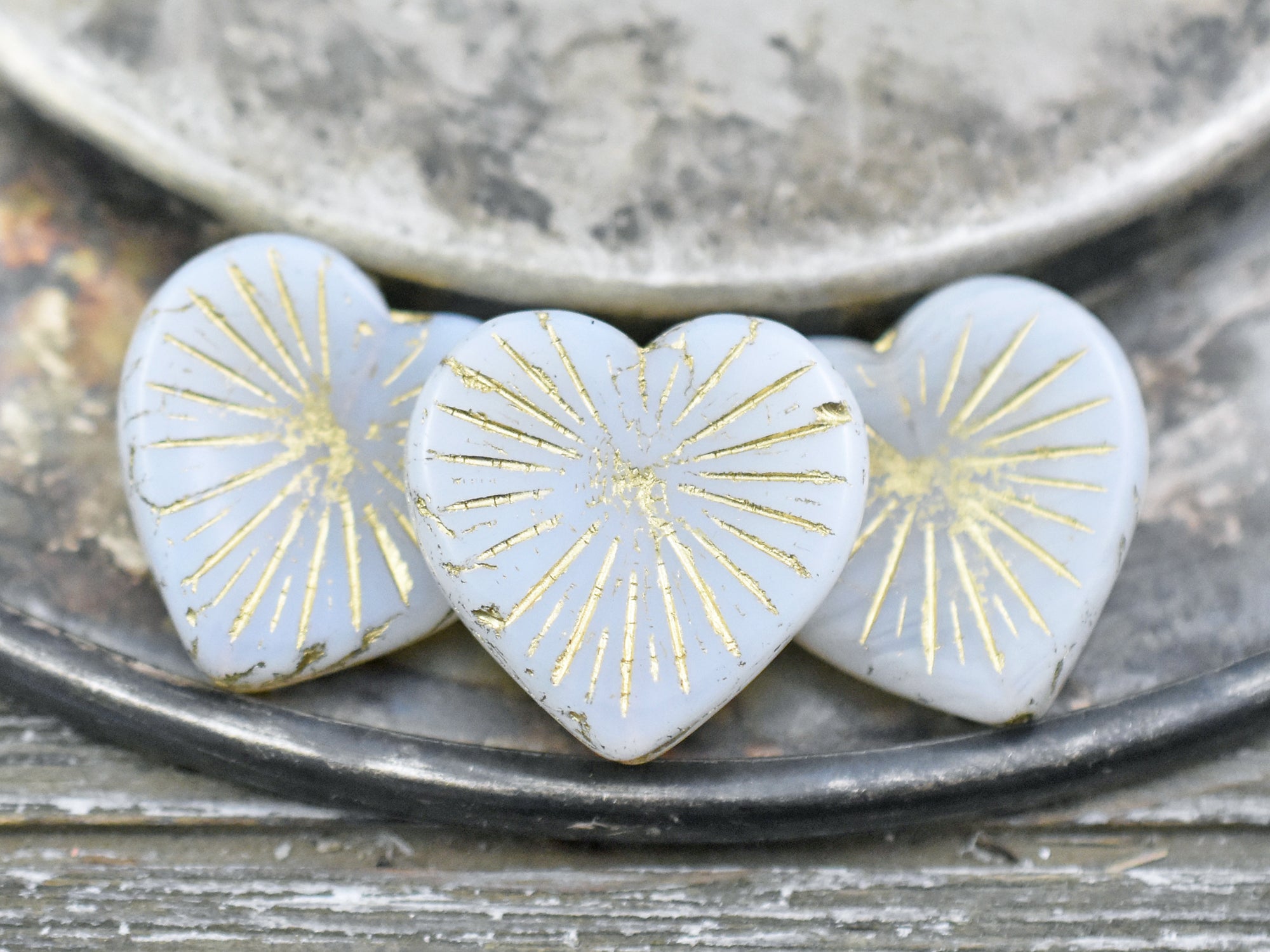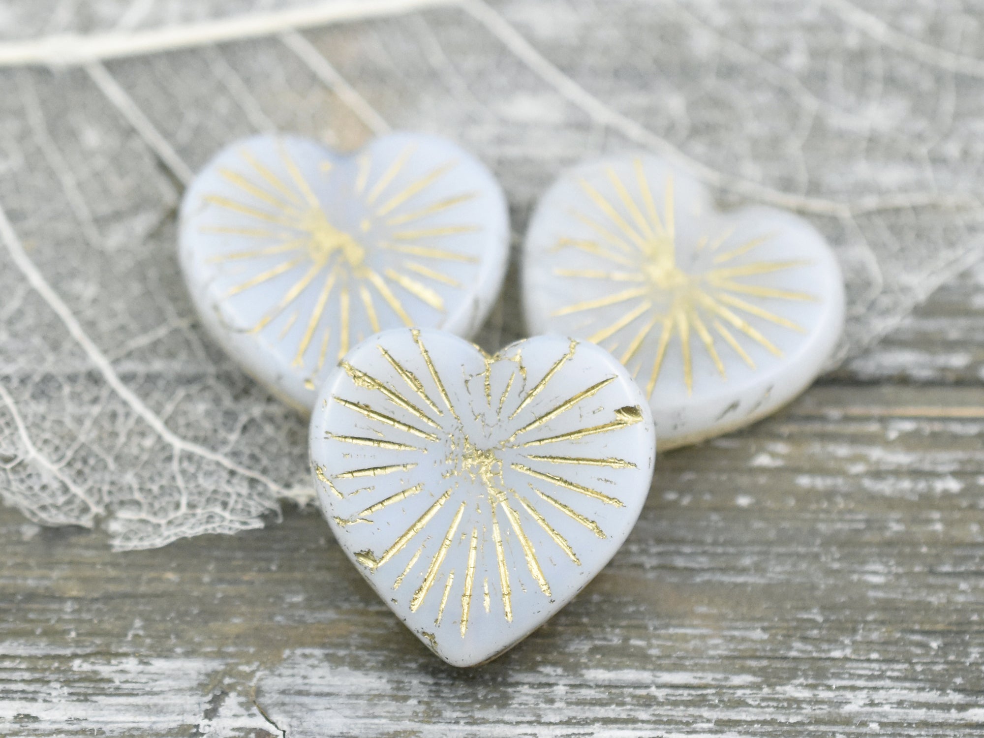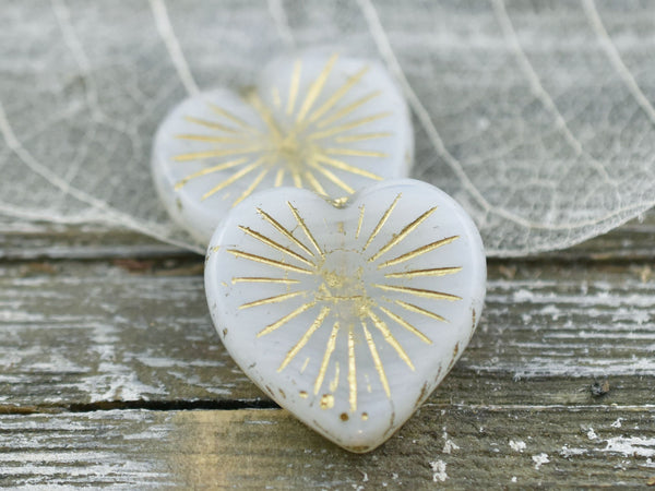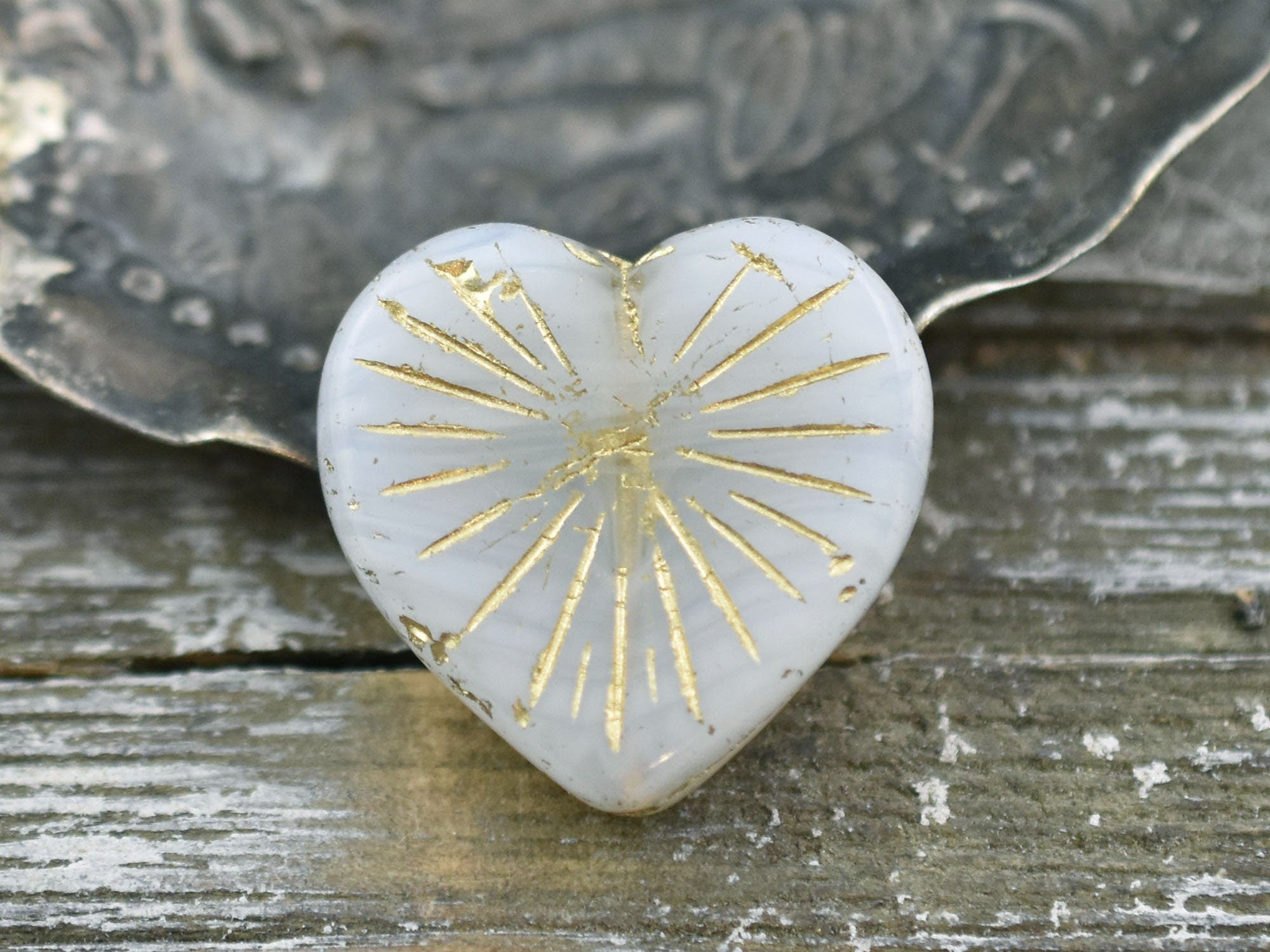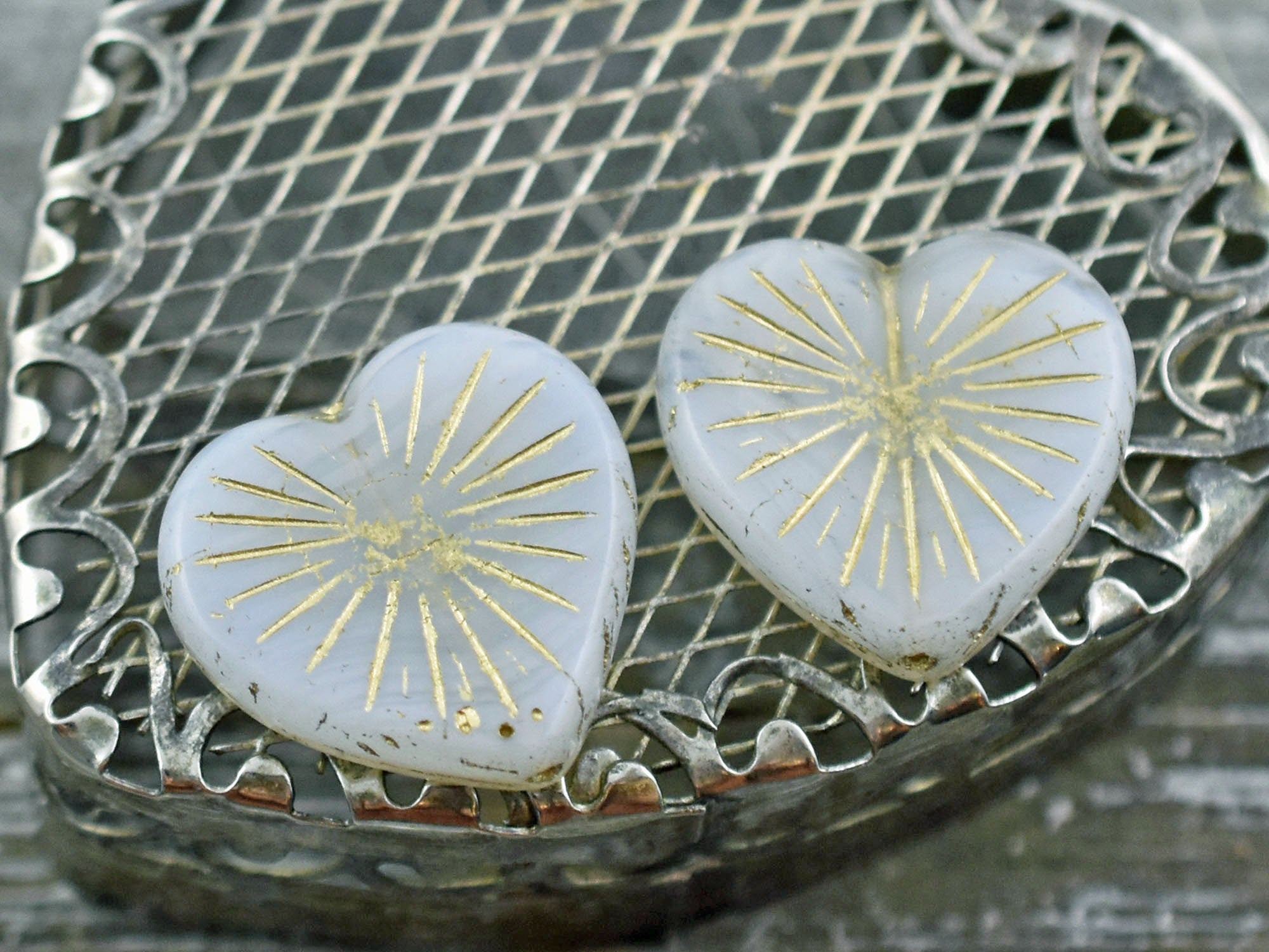 *4* 22mm Golden Bronze Washed White Opal Heart Beads