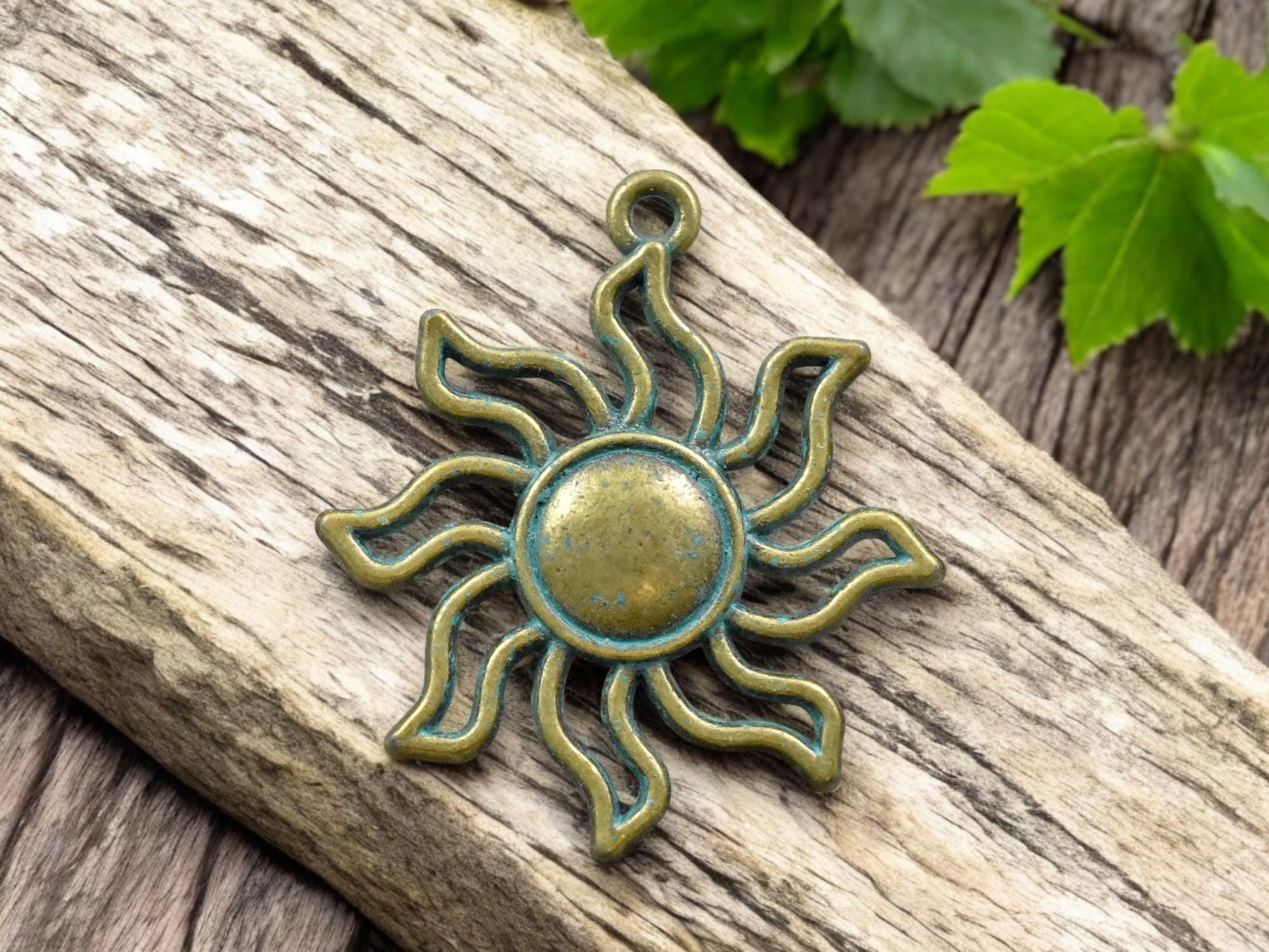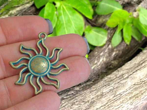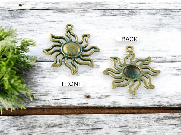 *10* 34x31mm Bronze Patina Sun Pendant Charms