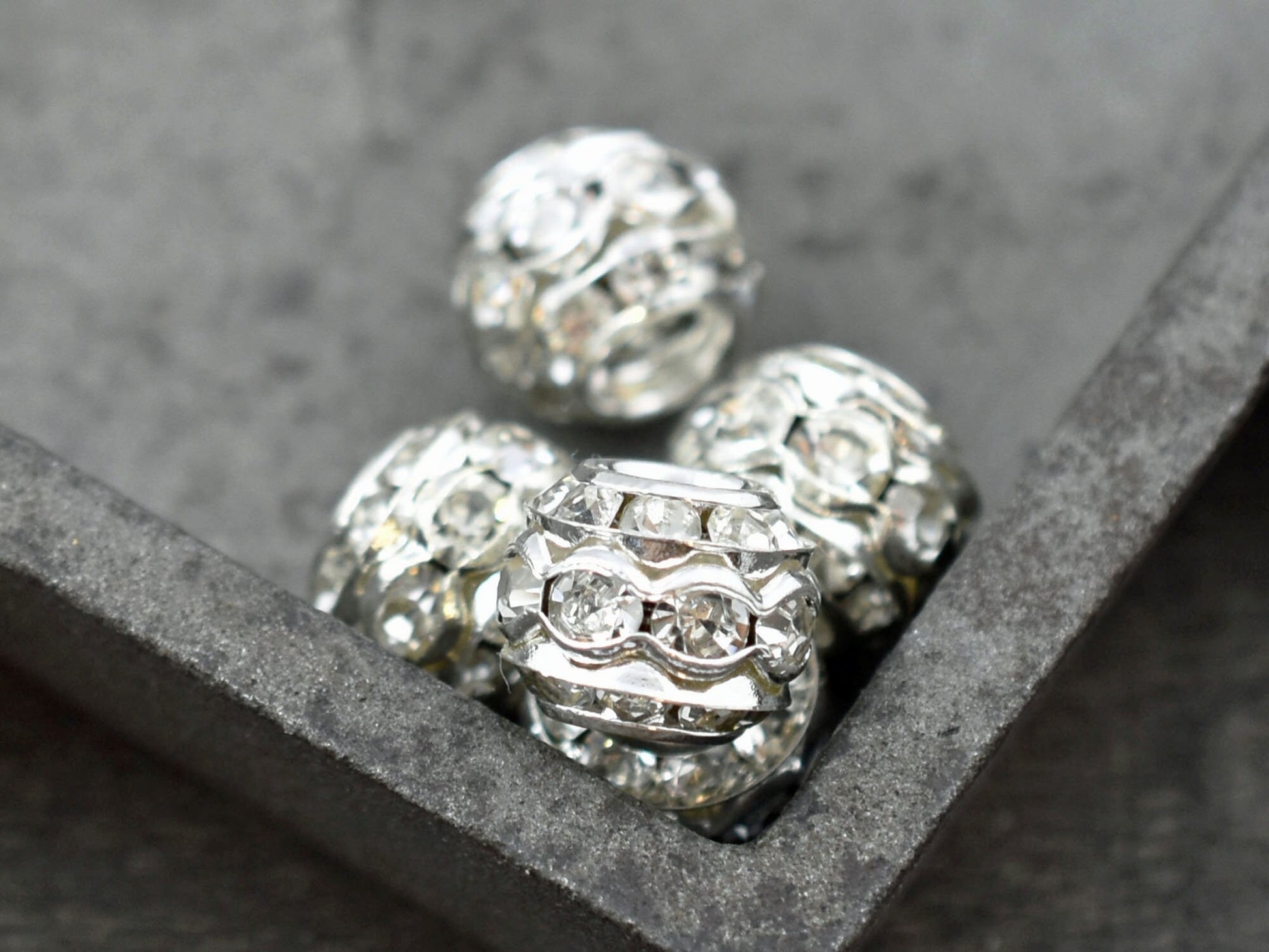 Type/Shape: Silver plated brass metal stacked barrel rhinestone beads