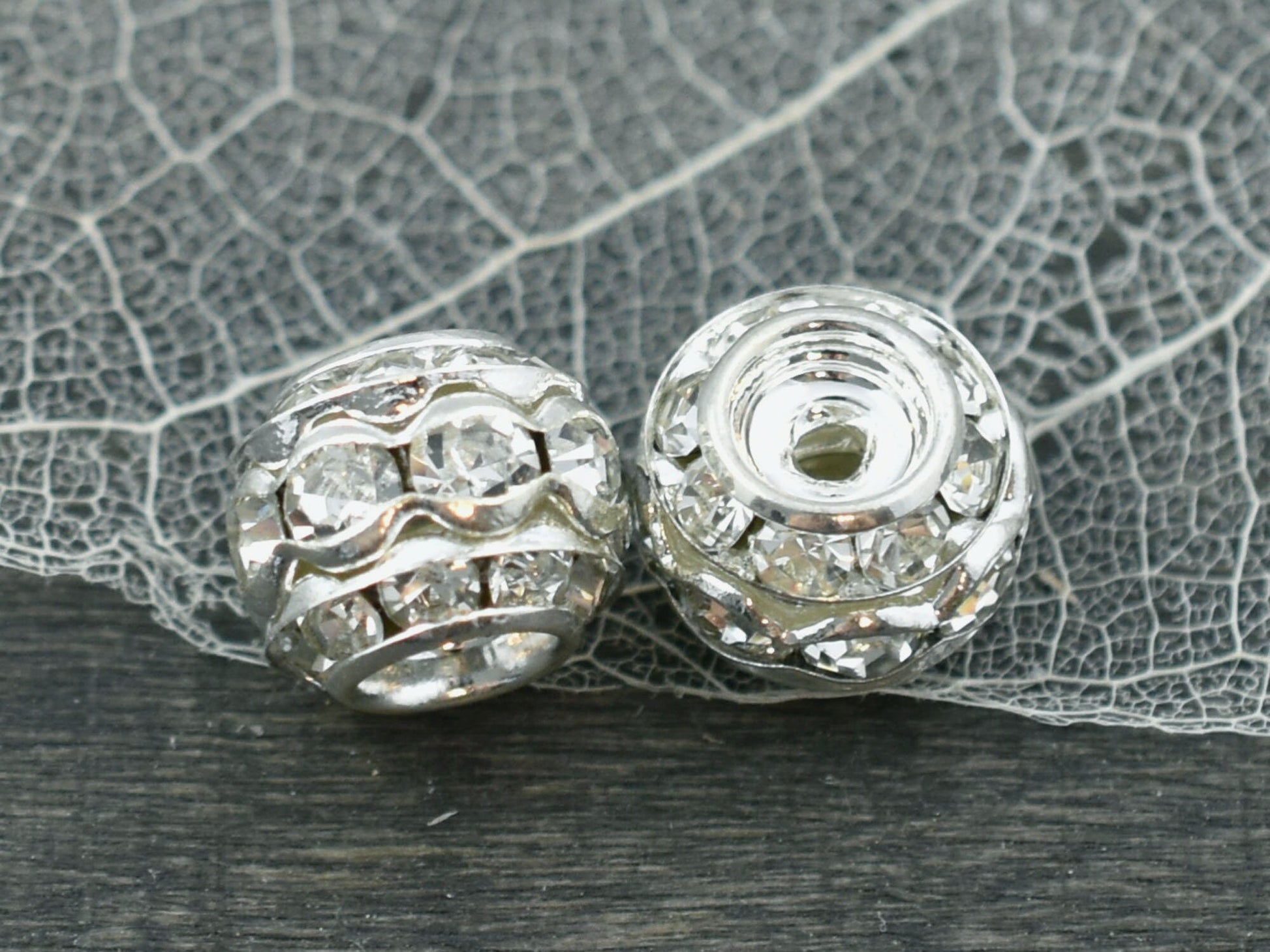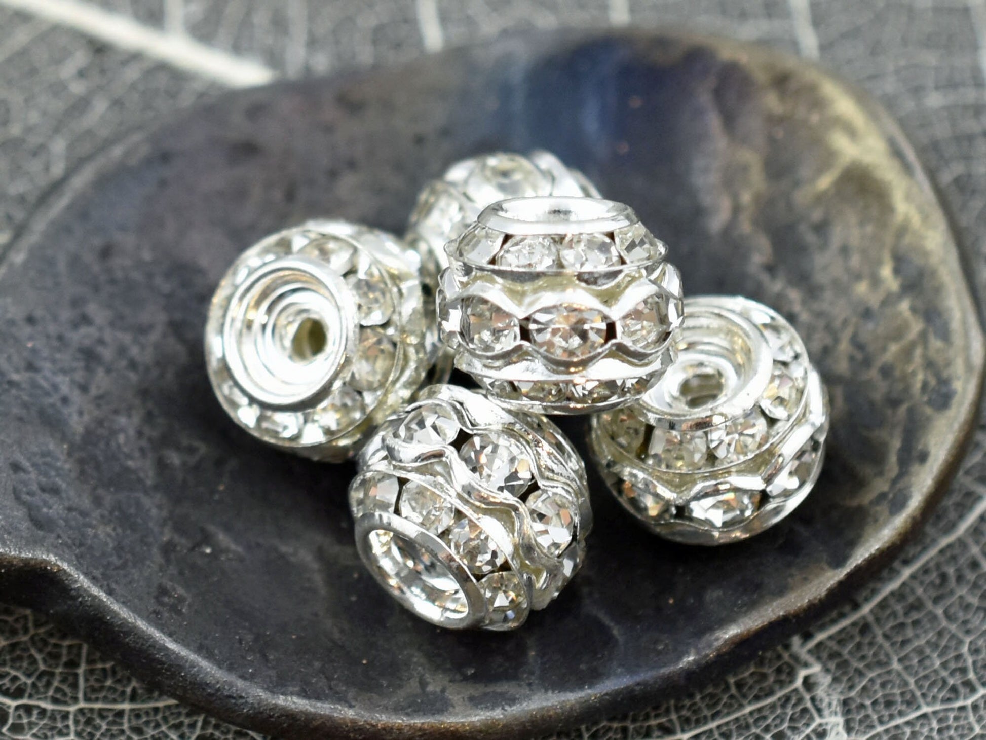 *10* 10mm Silver Stacked Barrel Rhinestone Beads