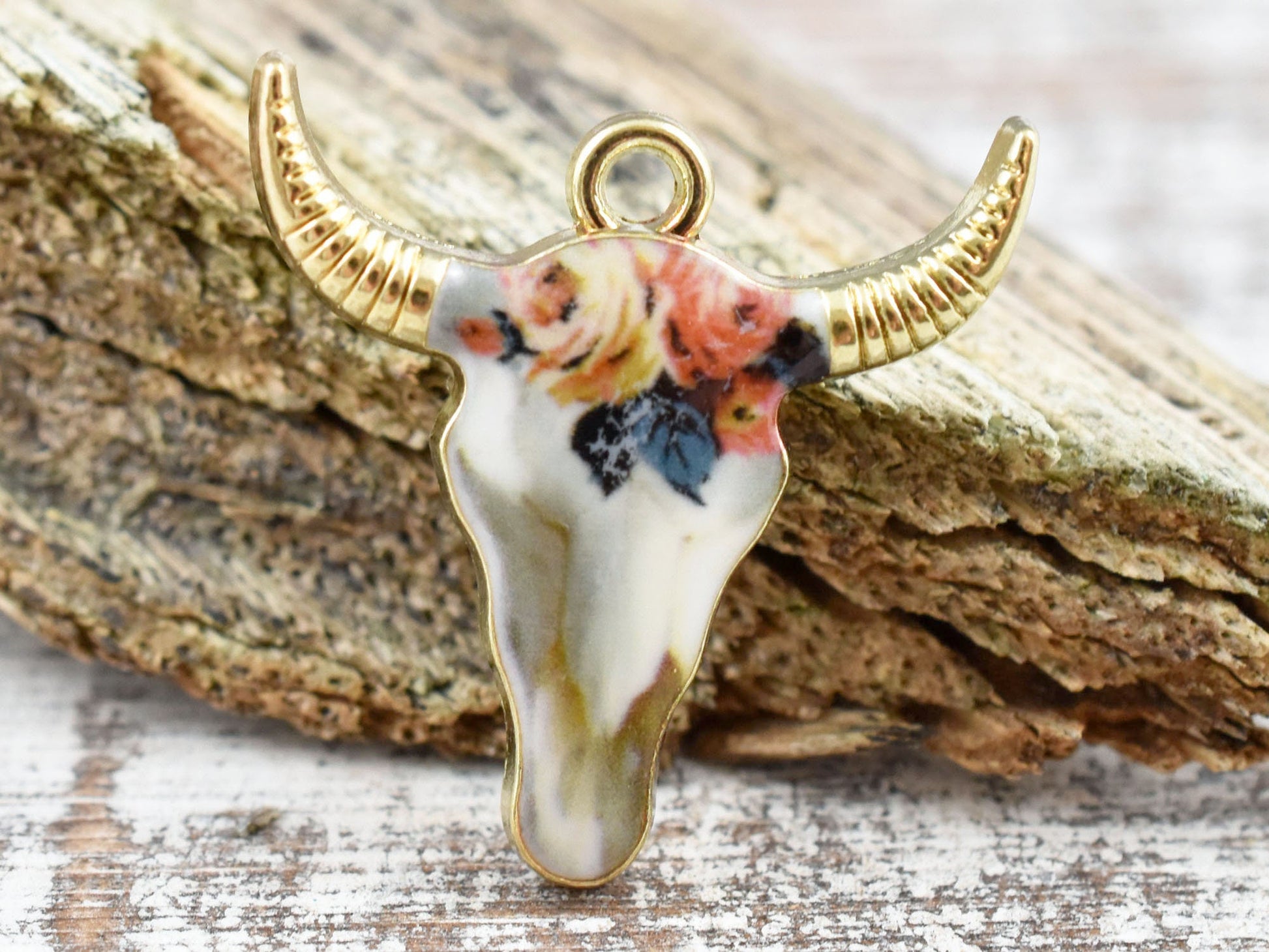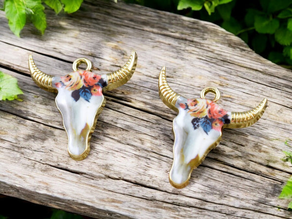 *10* 22x21mm Floral Enamel Cow Head Charms #1