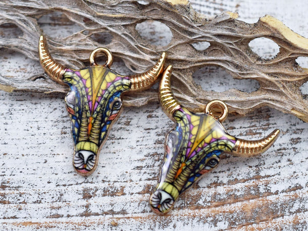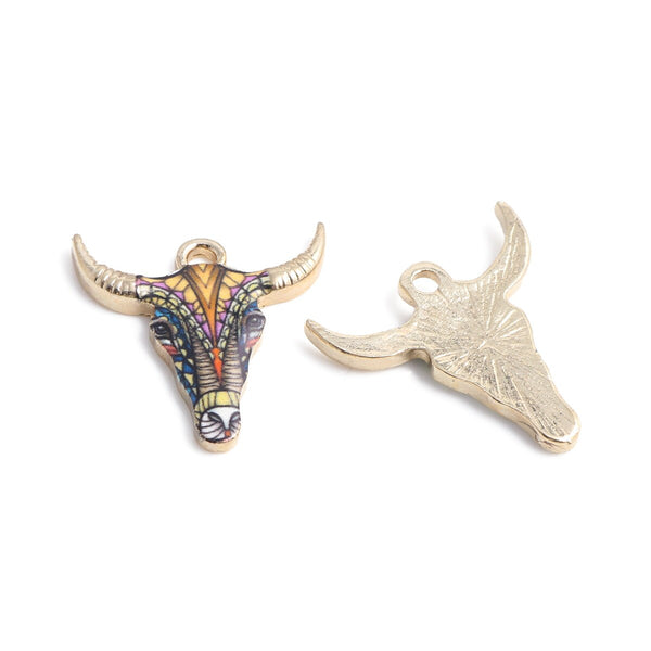 *10* 22x21mm Floral Enamel Cow Head Charms