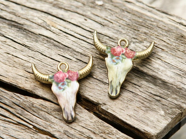 *10* 22x21mm Floral Enamel Cow Head Charms #3